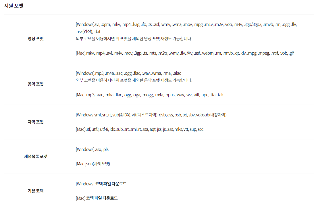 글로벌 플랫폼인 곰플레이어의 경우 한국어 뿐만 아니라 영어, 중국어, 일본어 등 세계적인 언어 지원이 가능하며, Mac의 경우는 한국어, 영어, 일본어만 지원합니다. 곰플레이어 지원포멧이나 코덱, 운영체제 등은 아래의 내용을 참고하시면 좋을 것 같습니다.
