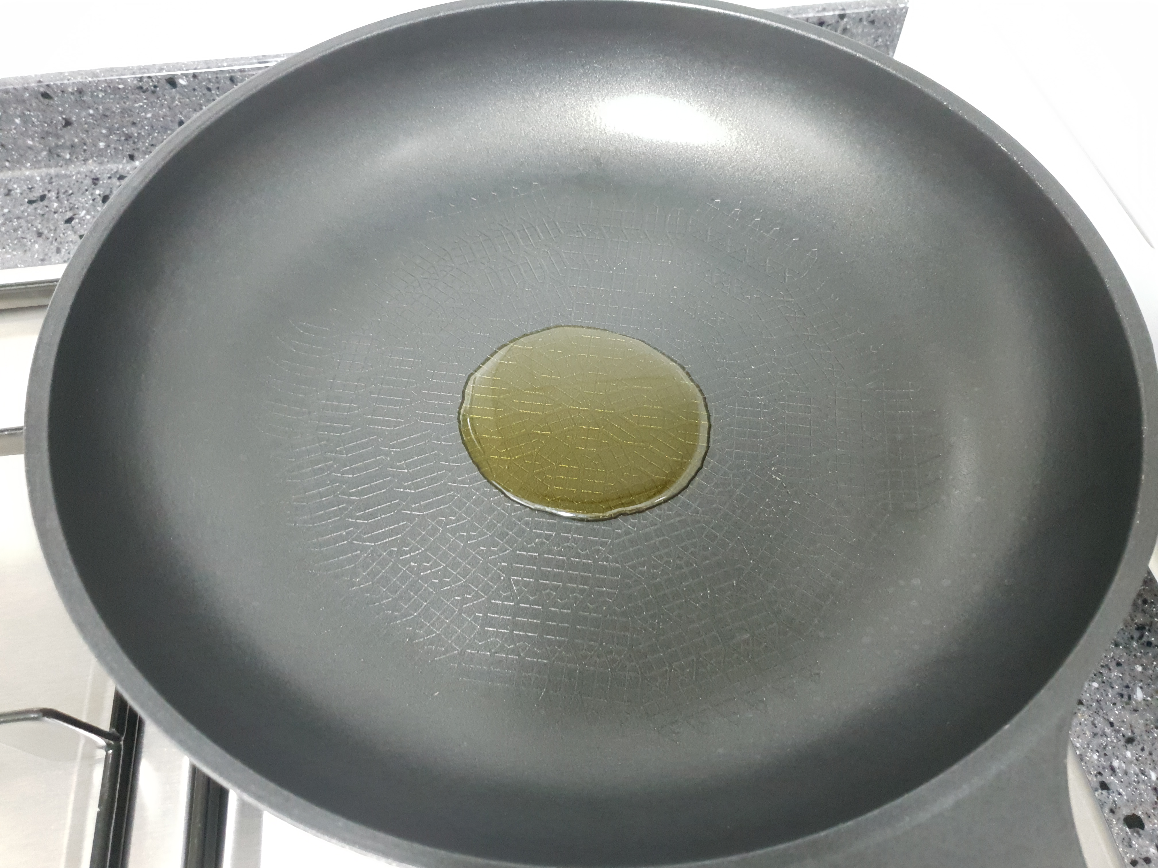 달구어진 프라이팬에 들기름을 두르고 쪽파를 넣어 중불에 30초간 볶아주세요.