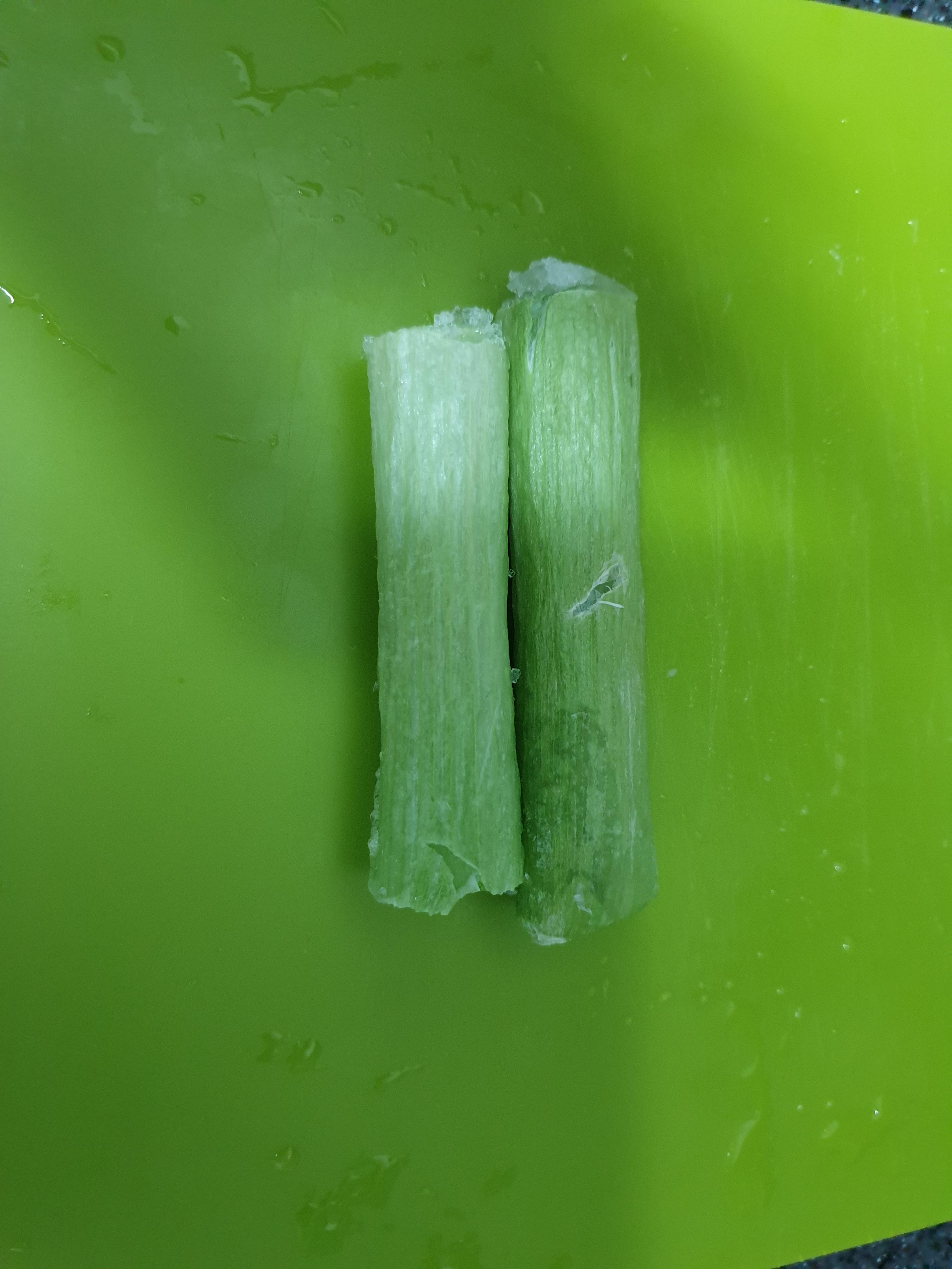 쪽파는 손가락 크기 2개 정도의 양을 썰어줍니다. 저는 냉동 쪽파를 사용해서 얼어 있는 것이 보이네요. 해동을 시켜주시는 게 좋겠지만 저는 바로 넣어주었습니다.