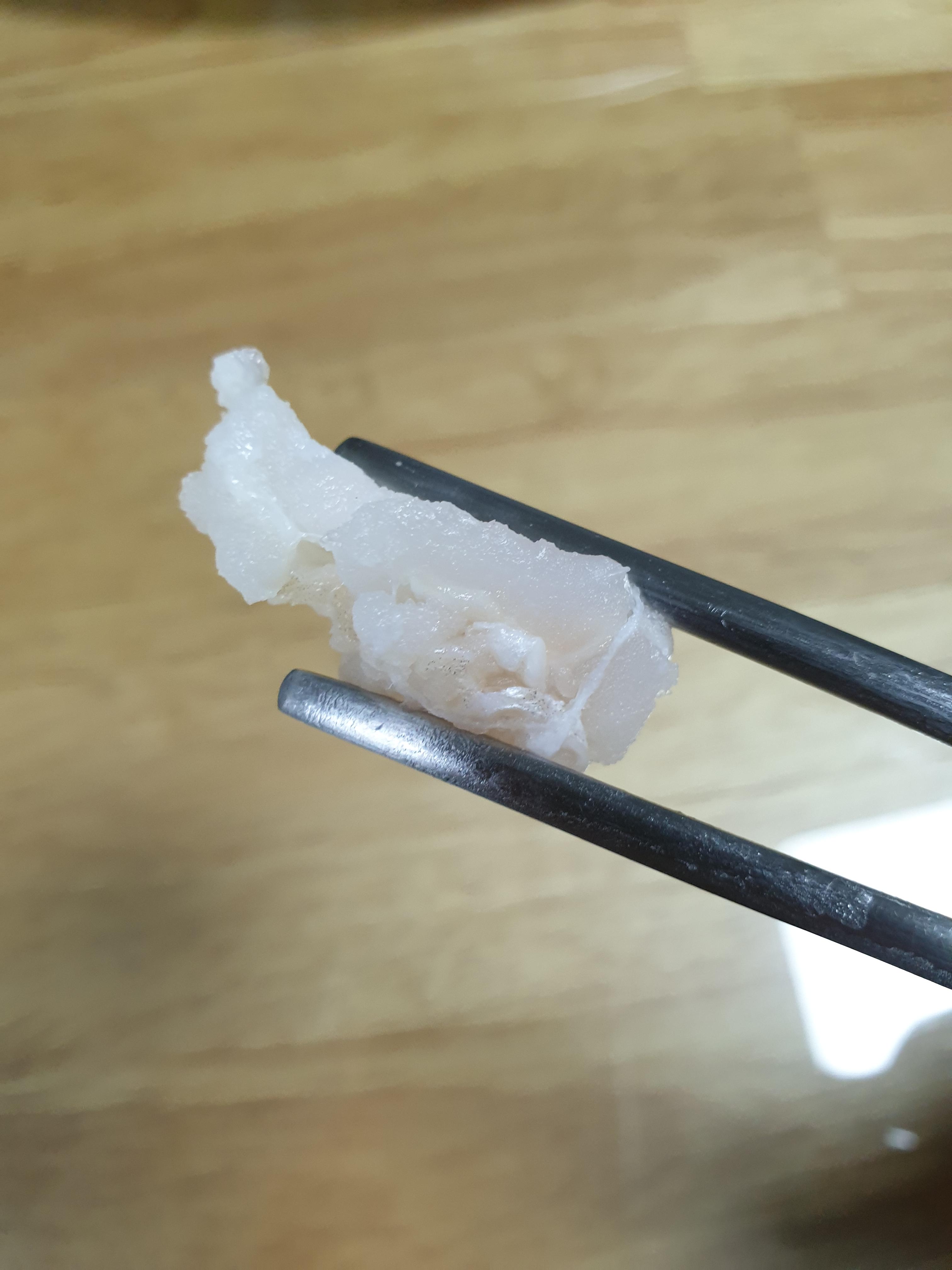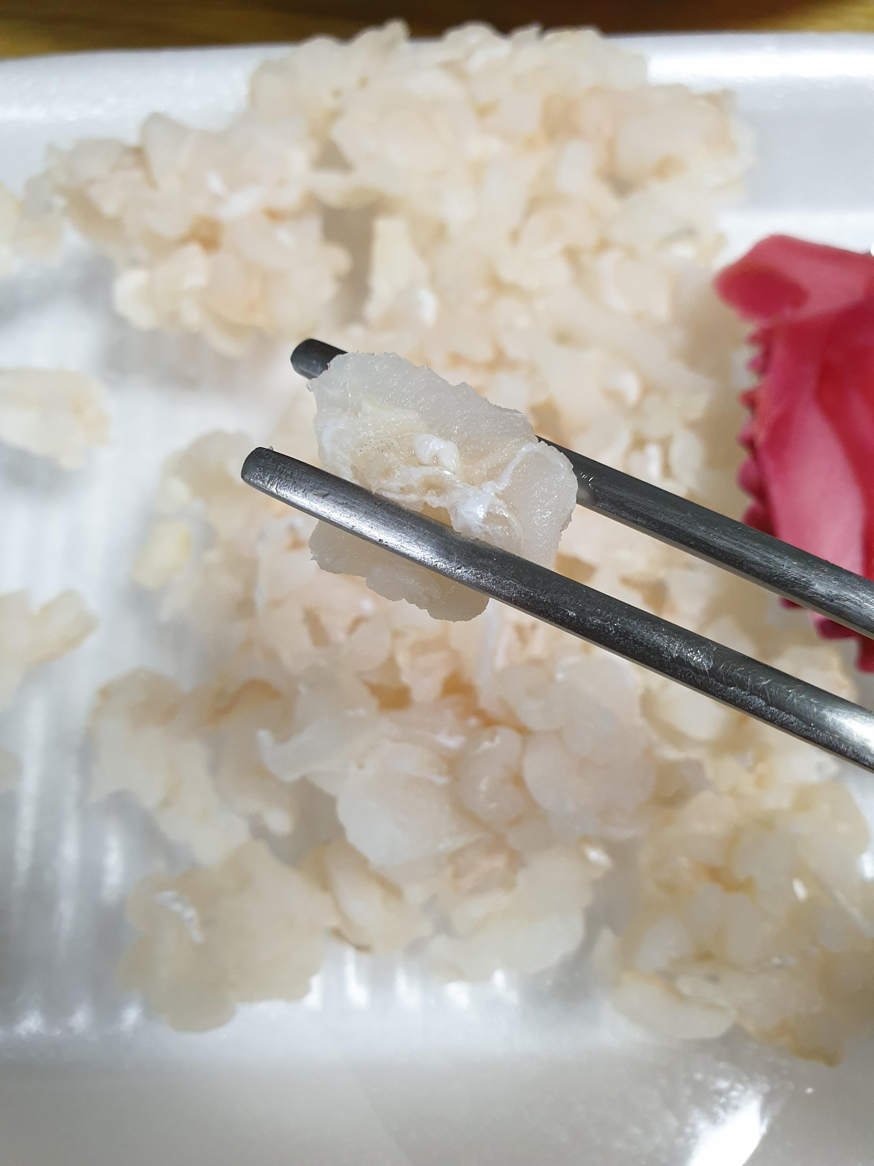 아나고회는 역시나 기름기가 없는 모습을 볼 수 있습니다. 담백하고 밍밍한 맛이 나긴 하지만 꼬들꼬들한 아나고회만의 특유의 식감에 중독되곤 합니다. 기름기가 없어서 포만감을 느낄 수는 없지만 별미로 간단히 먹기에 좋은 회라는 생각이 듭니다. 밍밍한 맛이 싫은 분들은 초장 맛으로 드시는 분들도 더러 계시더라고요 ㅎㅎ
