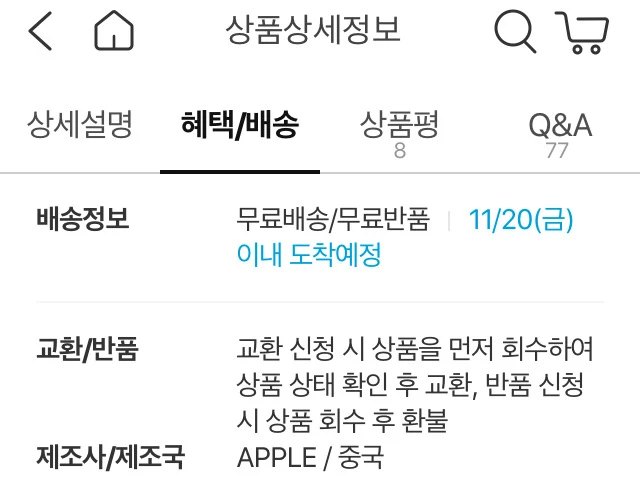위의 사진을 보시면 배송일은 10월 29일이라고 뜨는 것을 볼 수 있습니다.