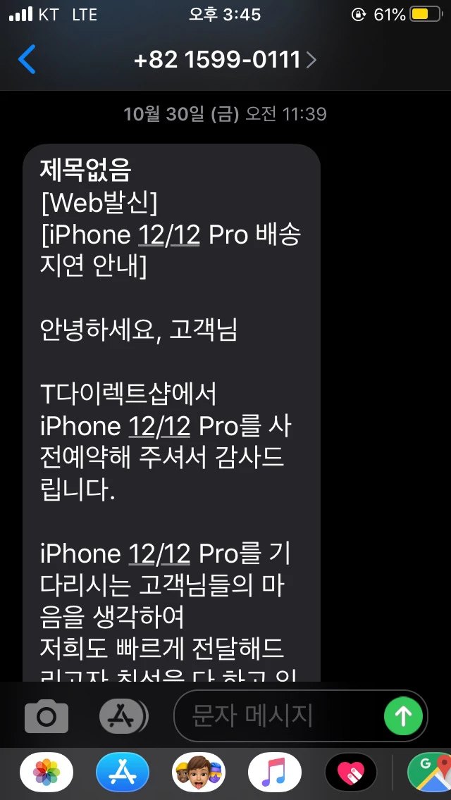 역시나 10월 30일 배송 지연 문자가 왔습니다.