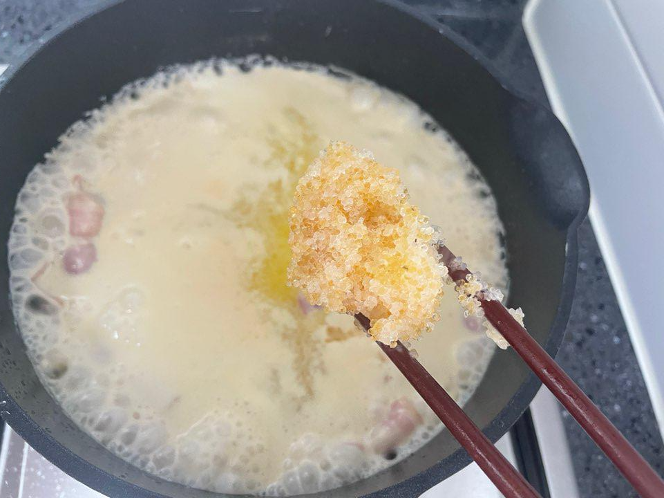 잘 섞어서 끓어줍니다. 끓어오르기 시작하면 날치알 절반을 넣어줍니다.