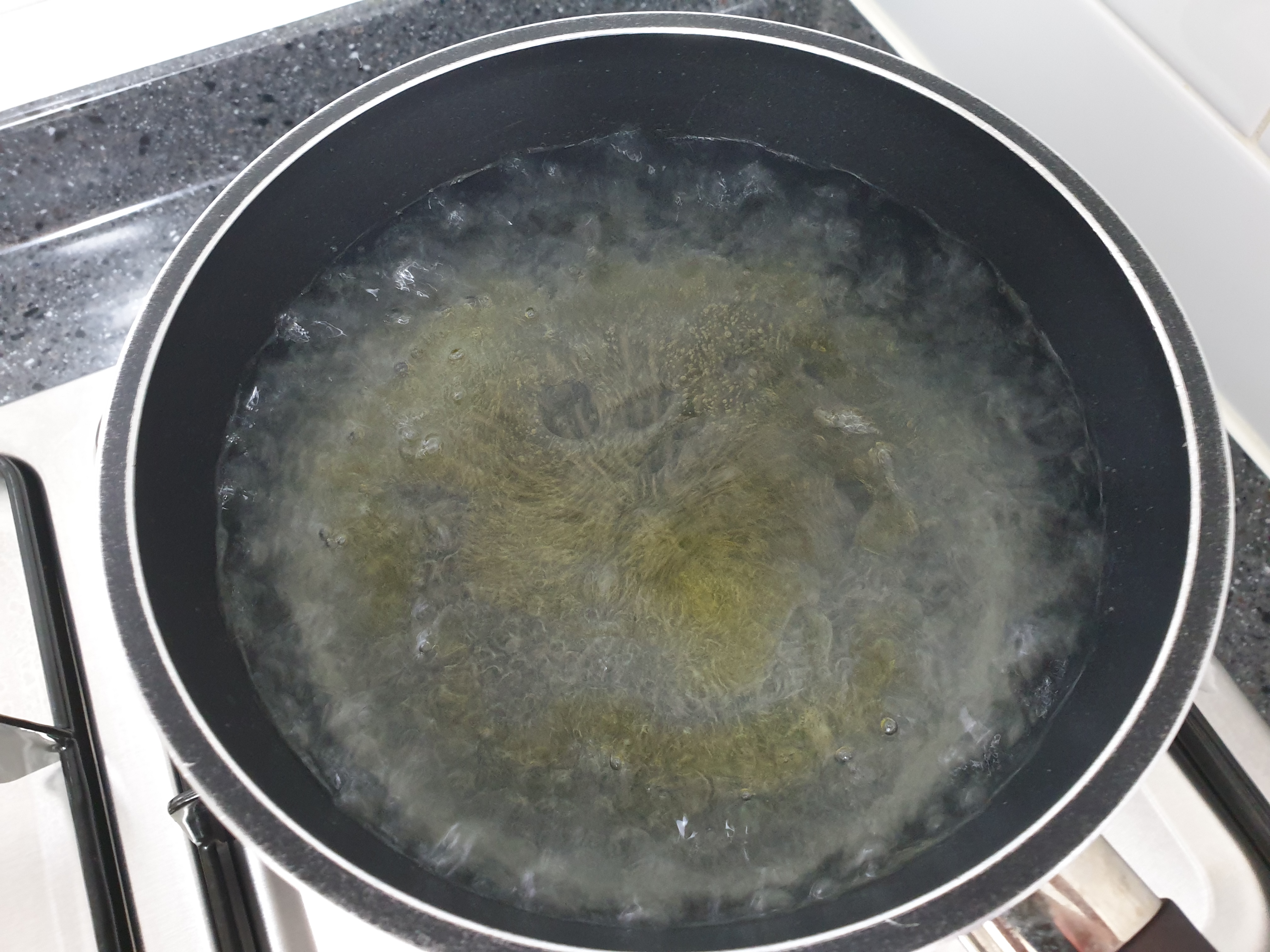 물이 점차 끓어오를 거예요. 기다려줍니다.