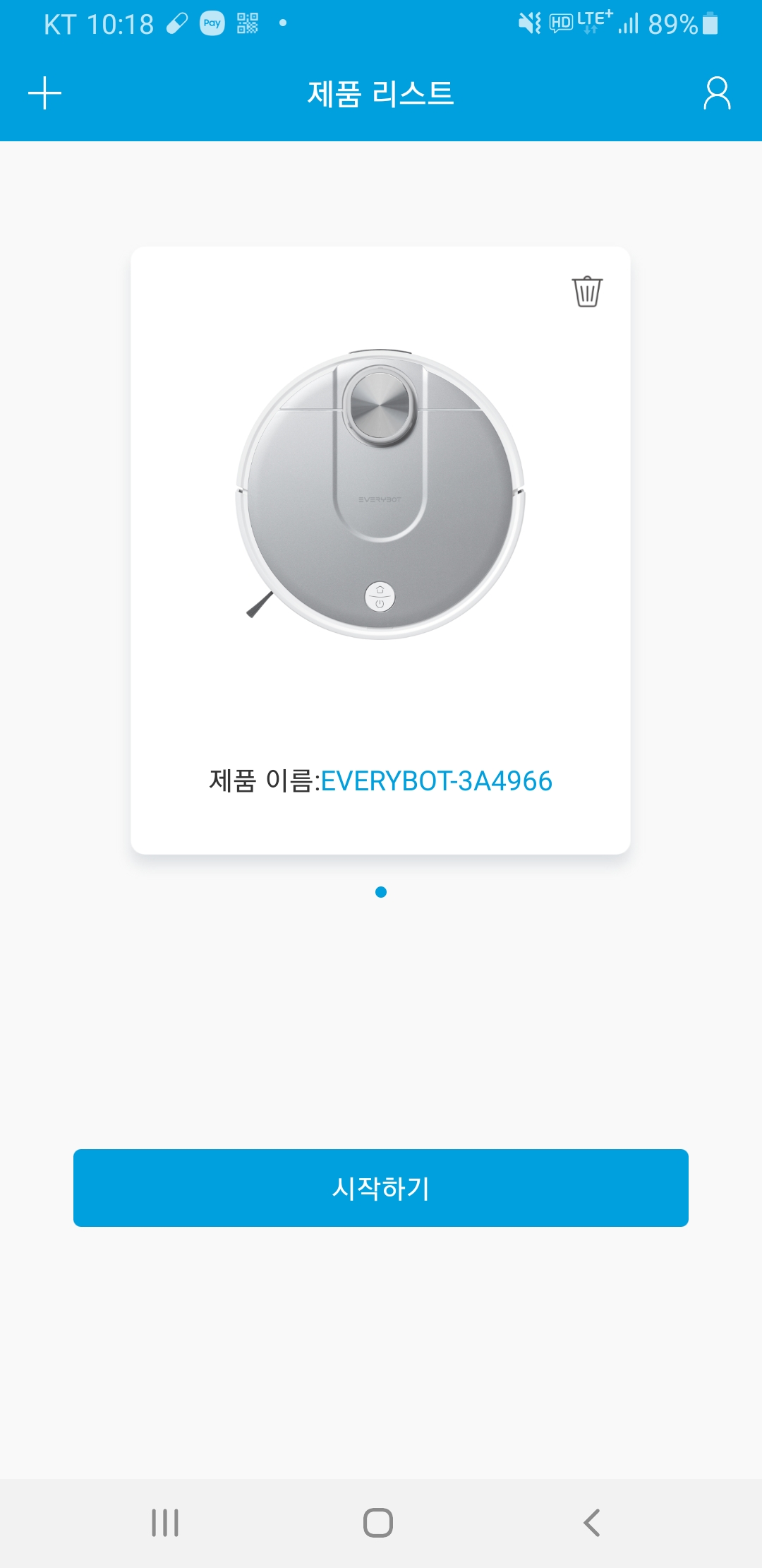 어플리케이션을 실행해서 제품을 등록합니다. 자동청소에서 시작을 누르면 전체적으로 맵핑을 하여 청소를 시작합니다. 와이파이가 연결이 되어 있어야 연동이 됩니다. 저는 와이파이 연결 부분이 귀찮아서 잘 사용하지 않는 기능입니다.