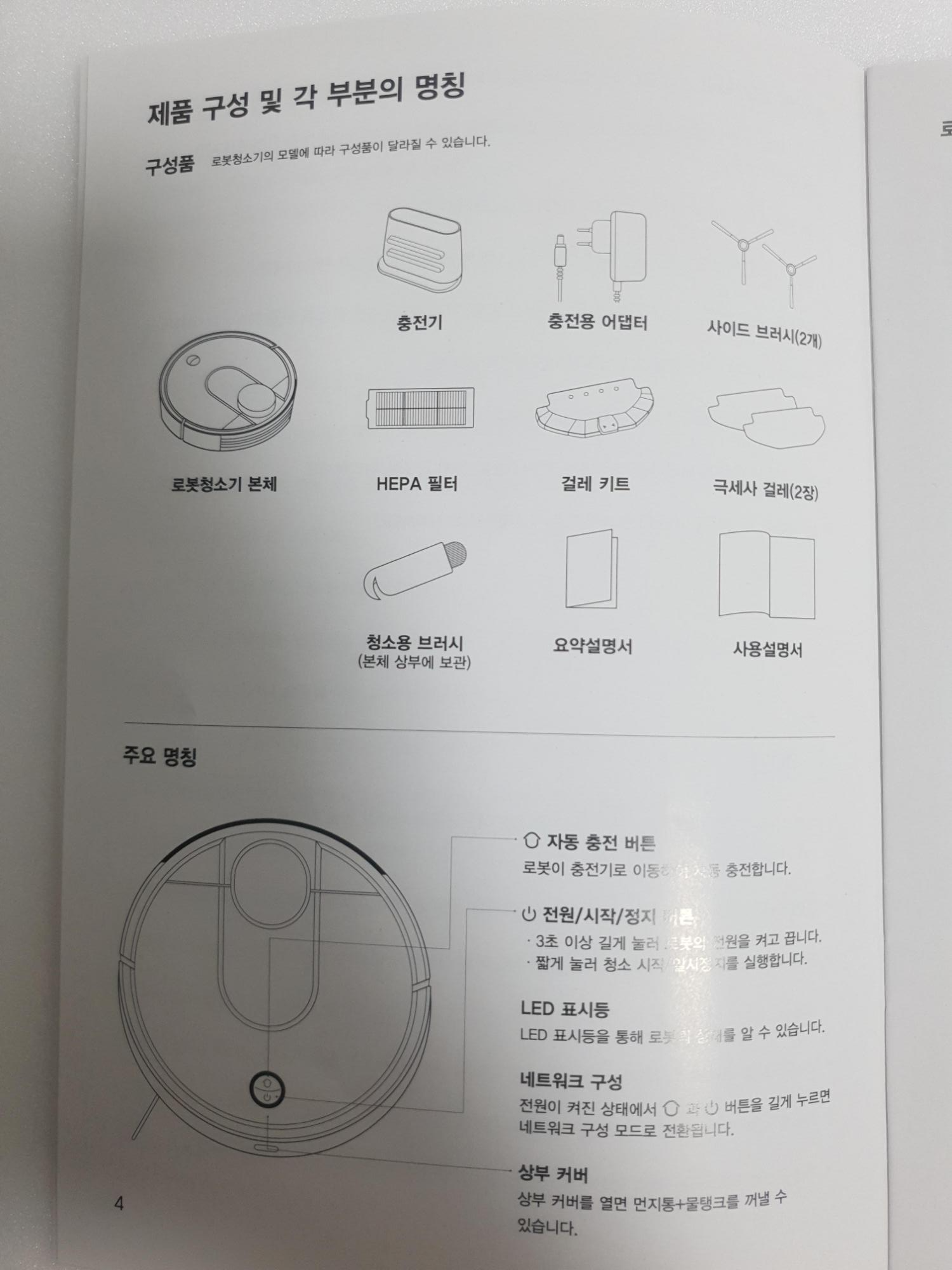 에브리봇3i 사용설명서입니다. 우선 제품이 제대로 왔는지 확인하기 위해서는 이 부분을 보아야 합니다.