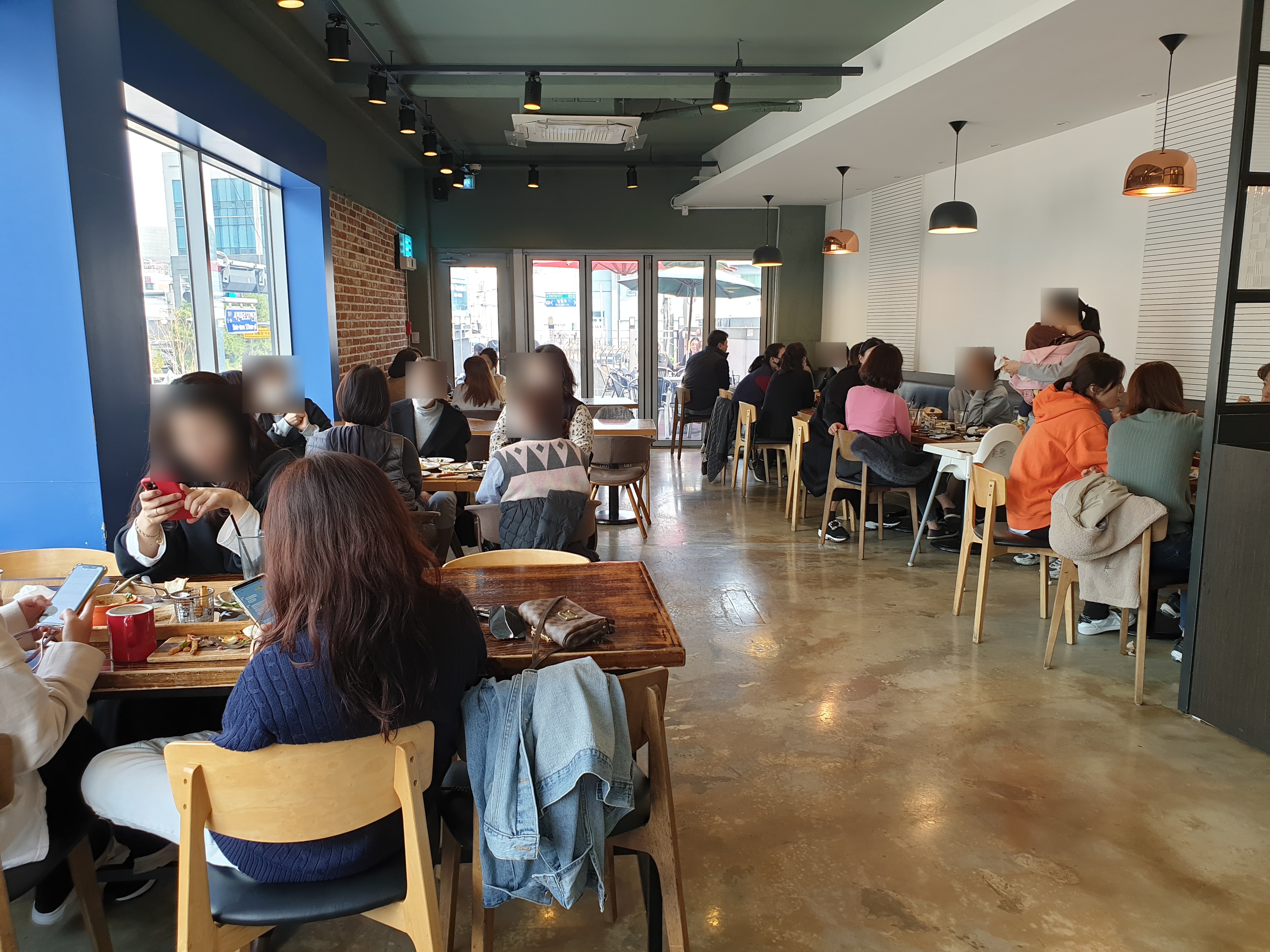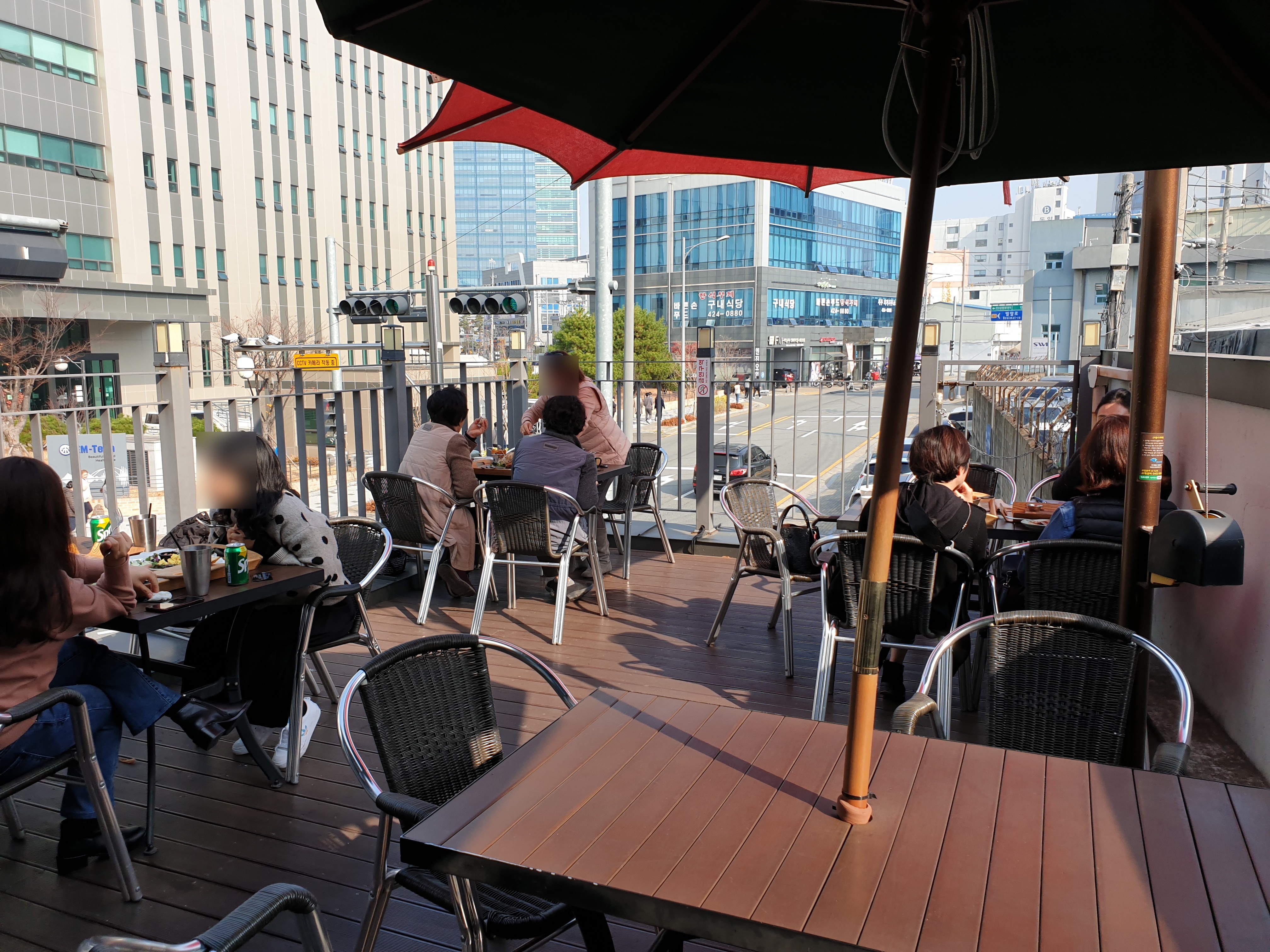 1층보다 2층에 사람들이 훨씬 많았습니다. 2층 내부뿐만 아니라 야외 테라스까지 가득 찬 모습입니다. 저희는 자리가 없어 1층에서 메뉴를 주문하여 식사를 하였습니다.