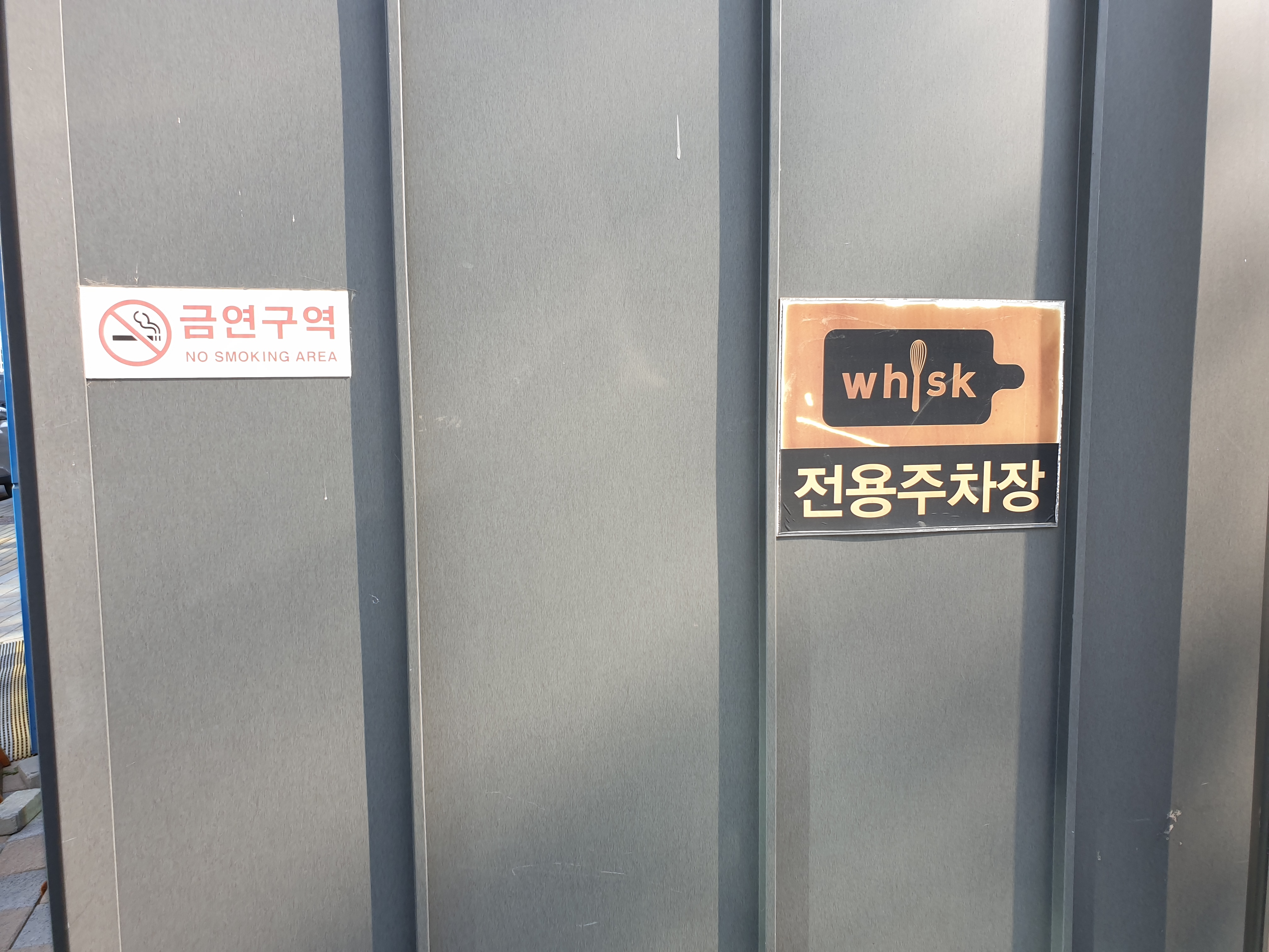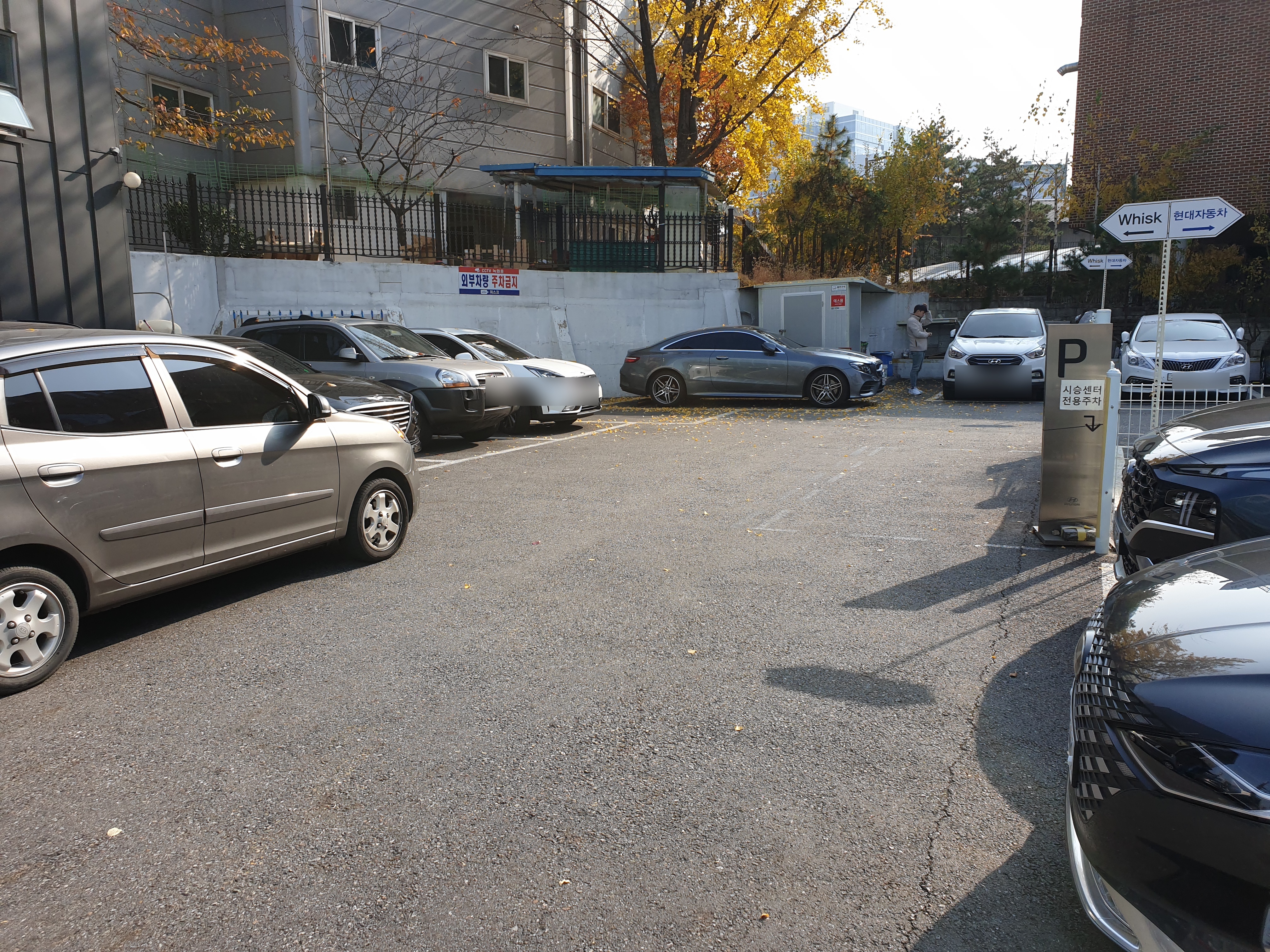 위스크는 전용주차장이 있습니다. 왼쪽 편이 위스크 전용주차장이고 오른편이 현대자동차 주차장입니다. 주차 공간은 약 8~9석 정도 되는 것으로 보였습니다.