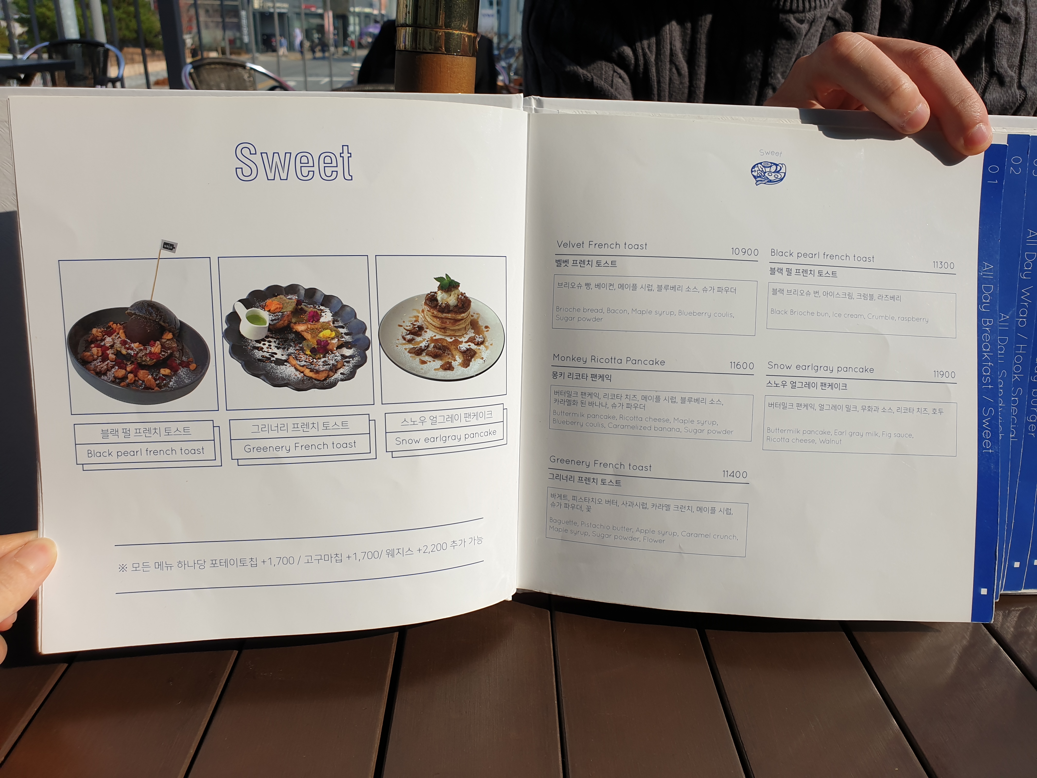 빅 블랙퍼스트는 딱 호텔 조식과 매우 유사하였습니다. 소시지와 베이컨을 스크램블과 곁들여 먹으면 마치 호텔에 있는 것과 같은 느낌을 받았습니다. 포카치아 빵은 빅 블랙퍼스트의 재료들과 함께 맛을 보시면 됩니다.