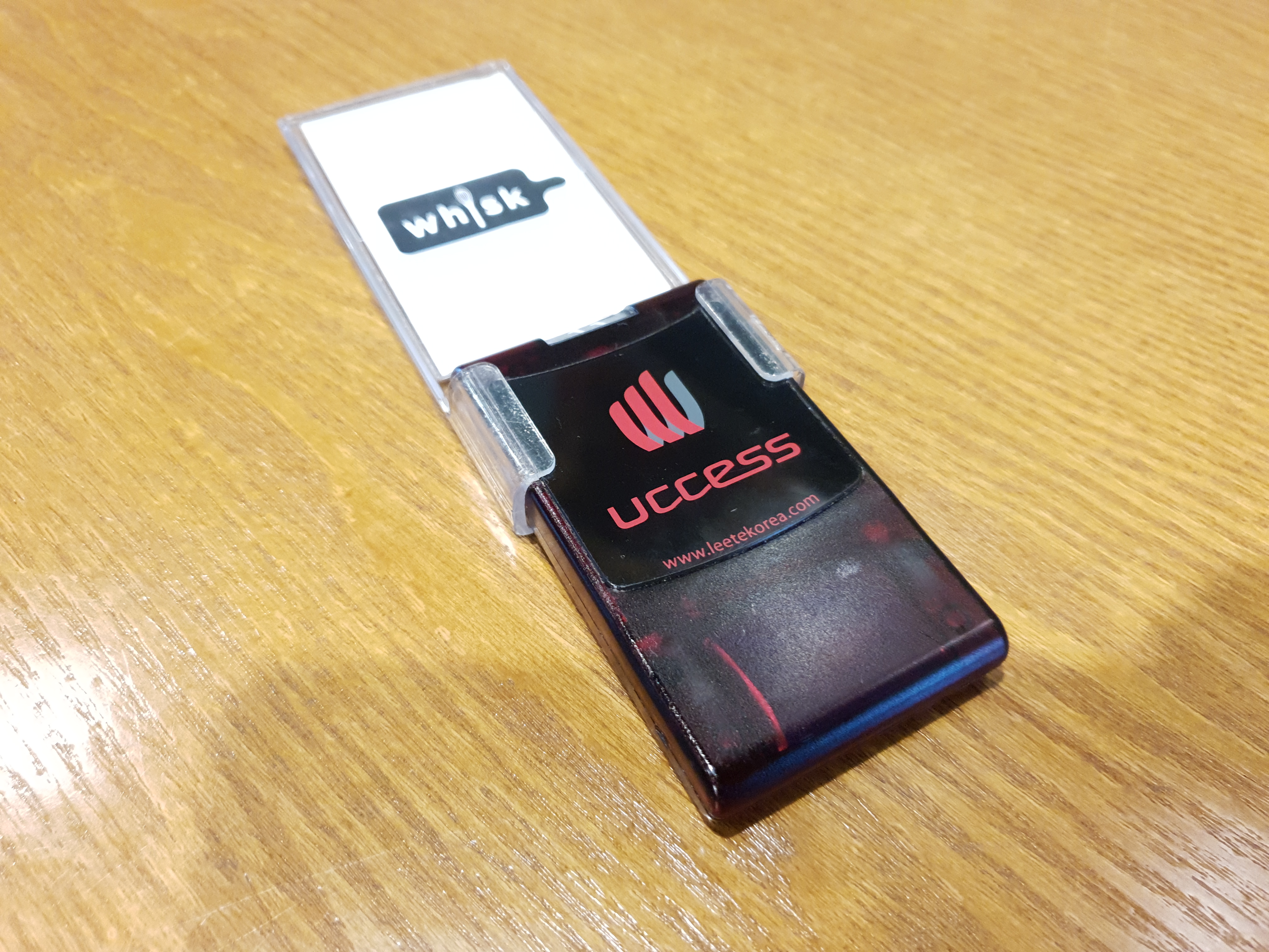 메뉴를 주문하면 위스크 로고가 새겨진 진동벨을 줍니다. 이제 메뉴가 나올 때까지 기다립니다.