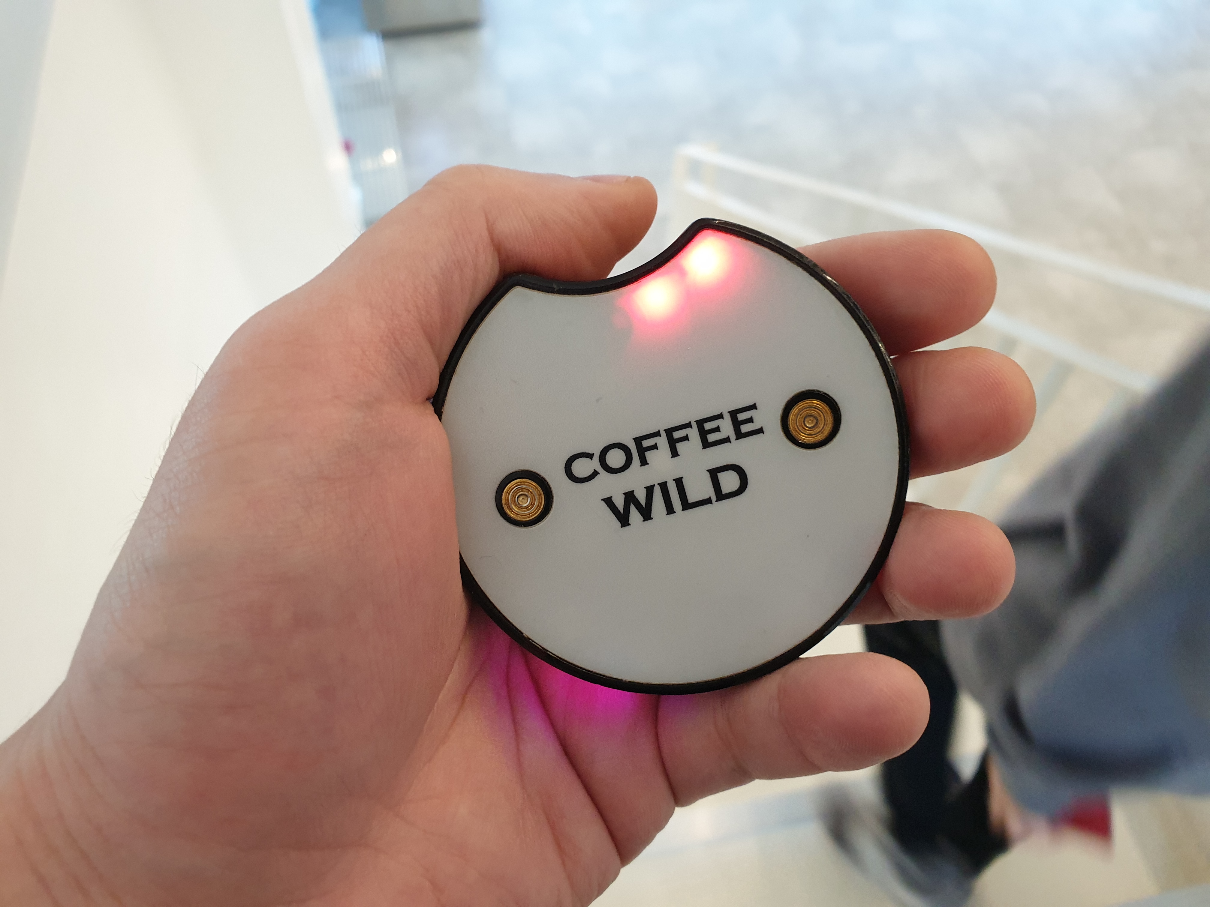 커피와일드의 진동벨입니다. 감각적인 디자인이 돋보입니다.