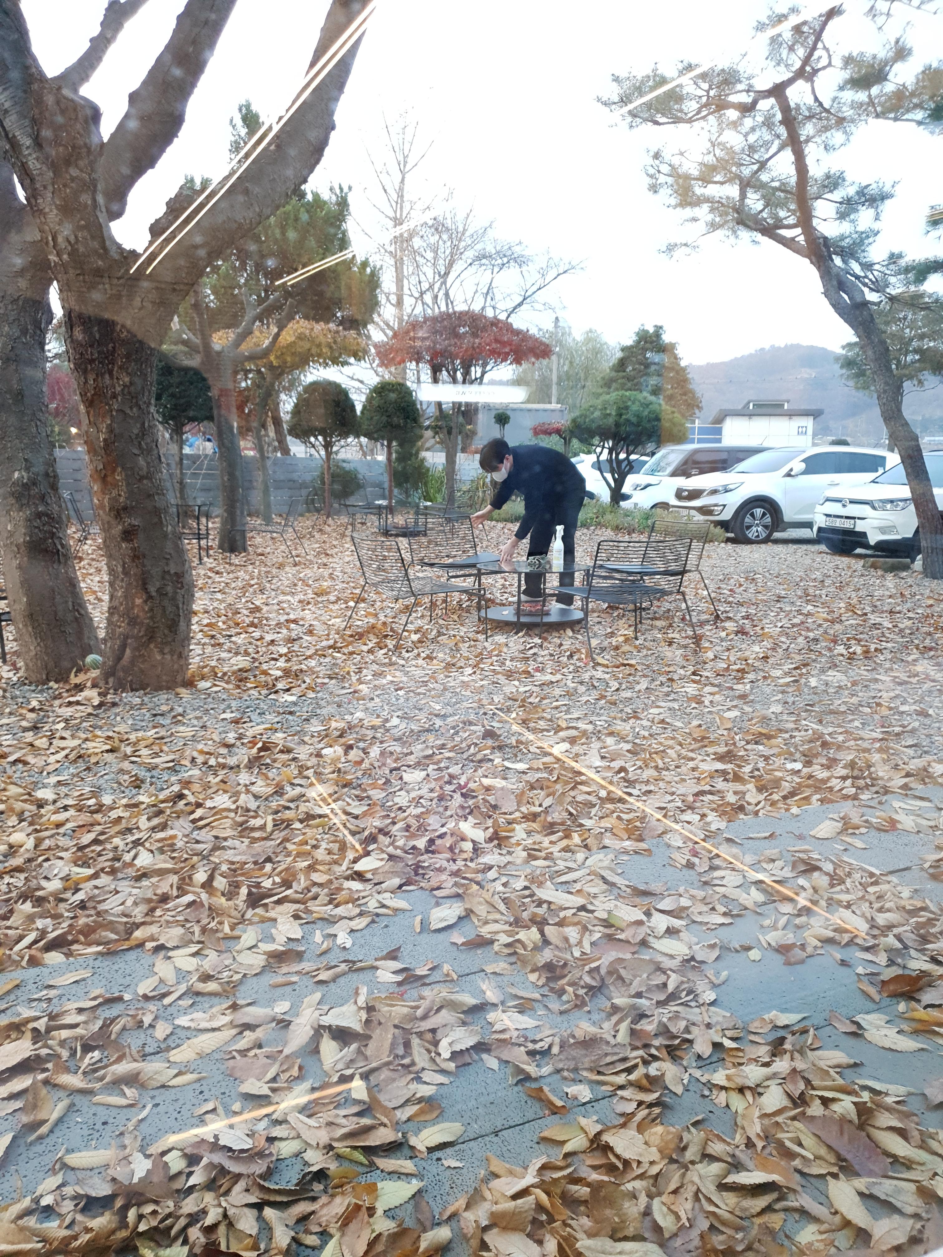 카페 주변을 둘러보았습니다. 손님이 나가면 테이블을 알콜소독으로 꼼꼼히 닦고 정리하는 점원의 모습이 보입니다.