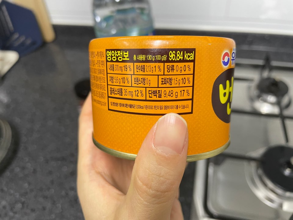 유동 번데기에는 영양정보가 적혀 있습니다. 총 내용량 130g이며, 100g 당 96.84kcal입니다.