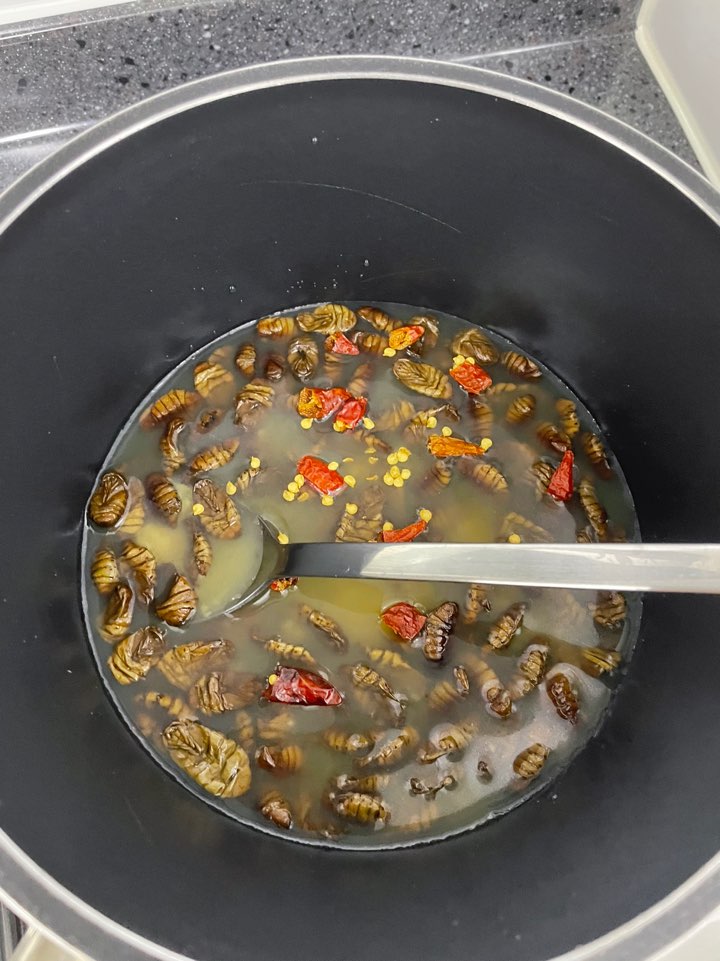 번데기탕을 그릇에 담아 먹어보았습니다. 오랜만에 맛보는 번데기의 식감입니다. 그냥 끓여도 먹을만하겠지만, 페페론치노홀을 넣으니 칼칼한 맛이 번데기와 궁합이 정말 좋았습니다. 오독오독 씹히는 번데기탕을 먹으니 겨울철 종이컵에 한 가득 담긴 추억이 떠오릅니다.
