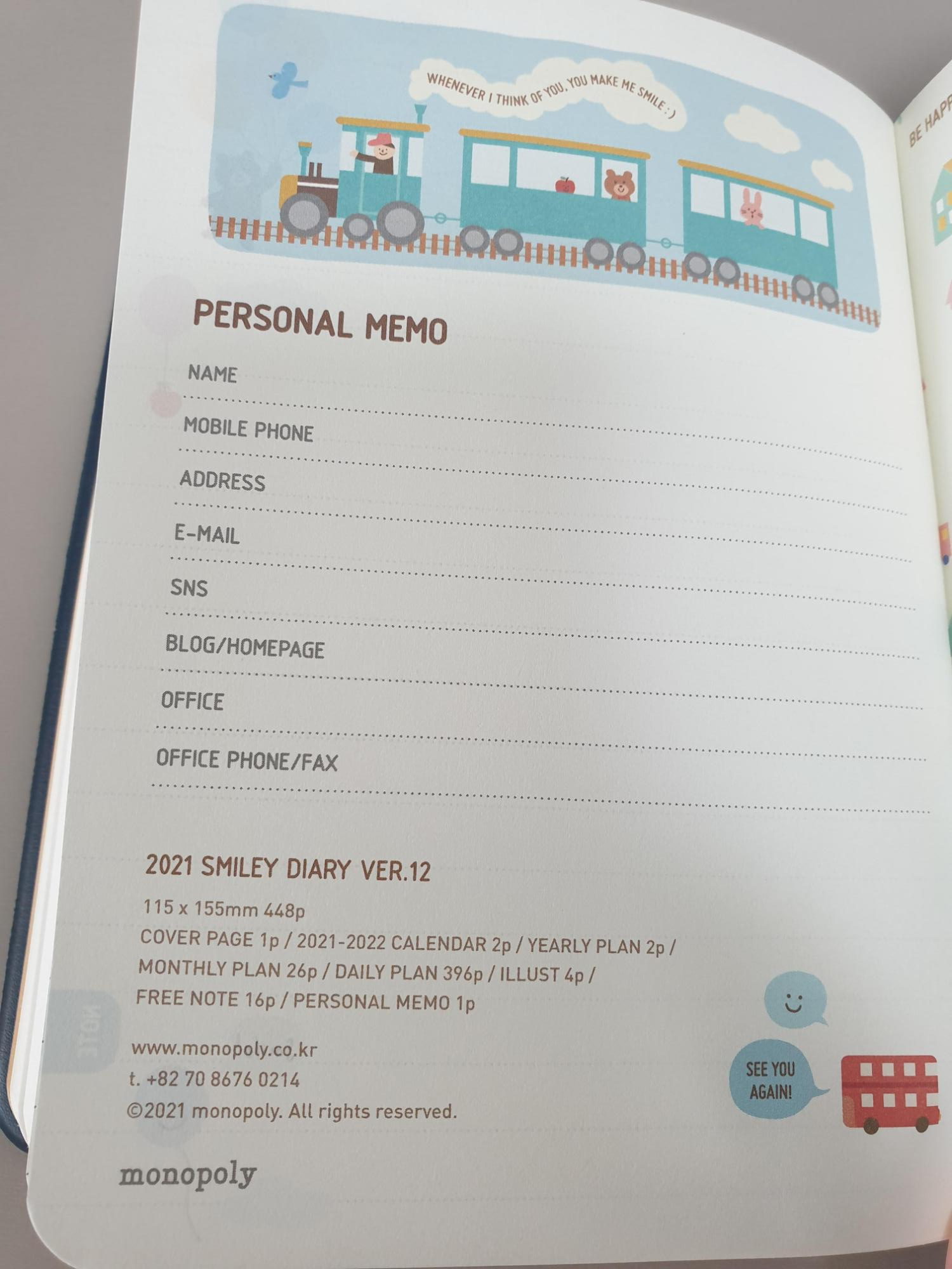 이제 2020년이 가고 2021년이 다가오고 있습니다. 이 맘 때쯤이면 올해를 반성하고 내년의 계획을 세우기 위해 다어이리를 구매하곤 하는데요. 다이어리를 알아보다가 모노폴리 스마일 다이어리 2021을 알게 되었습니다.