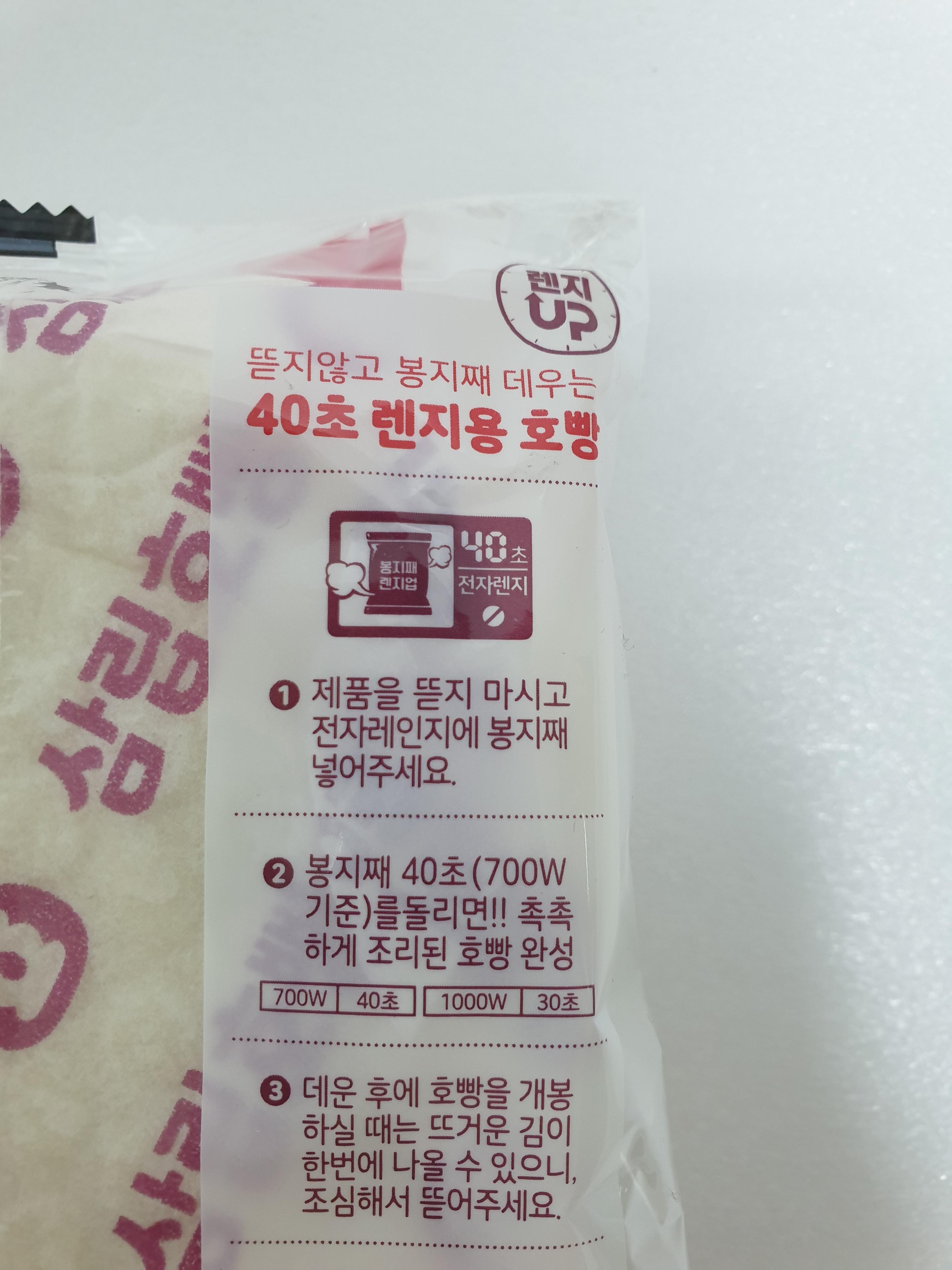 전자렌지 700W 기준으로 봉지째 40초만 돌리면 조리가 완성됩니다. 전자렌지 시간은 봉지 뒷부분에 적혀 있습니다.