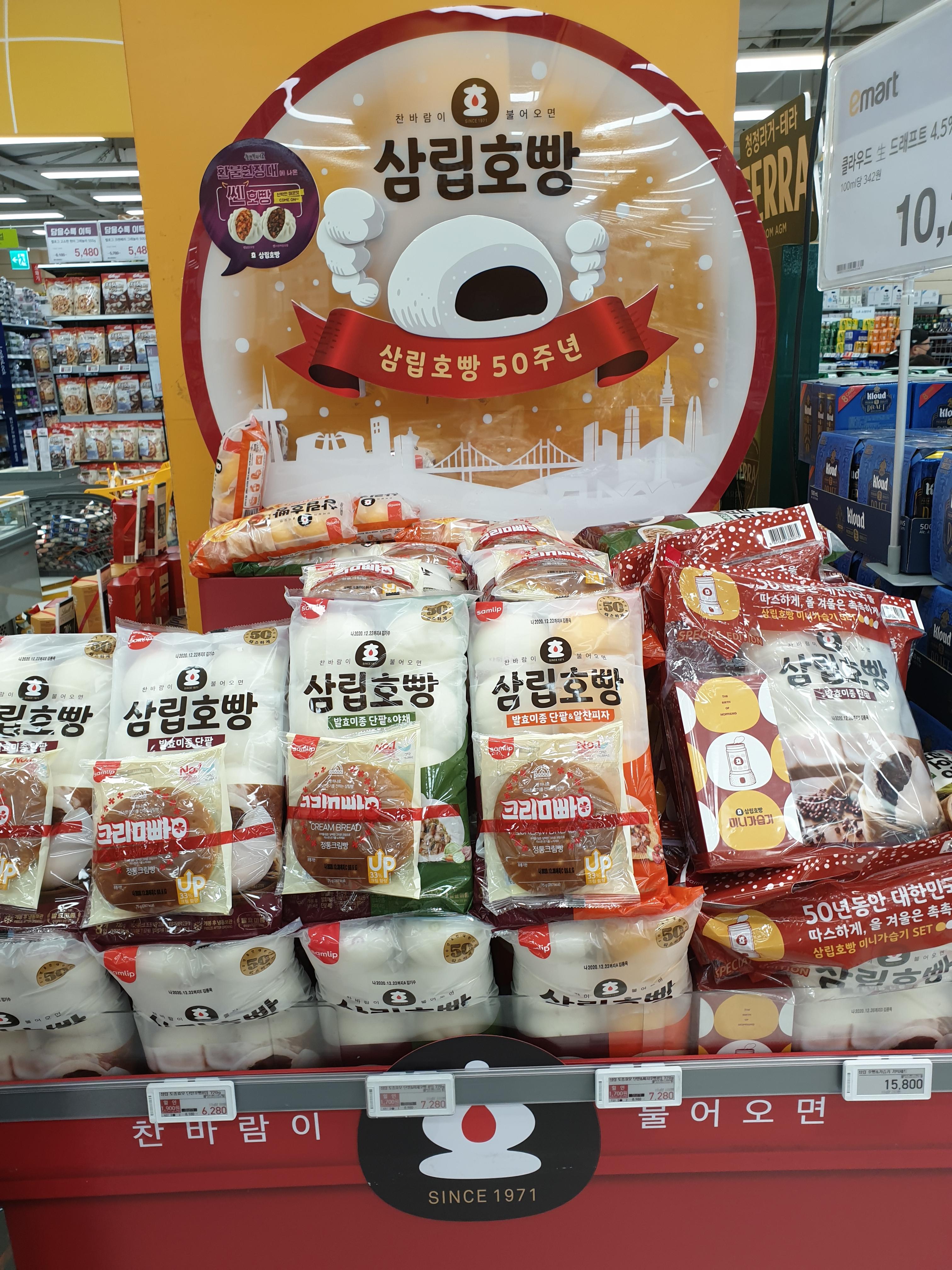 이마트에서 파는 호빵들입니다. 삼립호빵 50주년을 기념하여 할인행사를 진행하고 있습니다.
