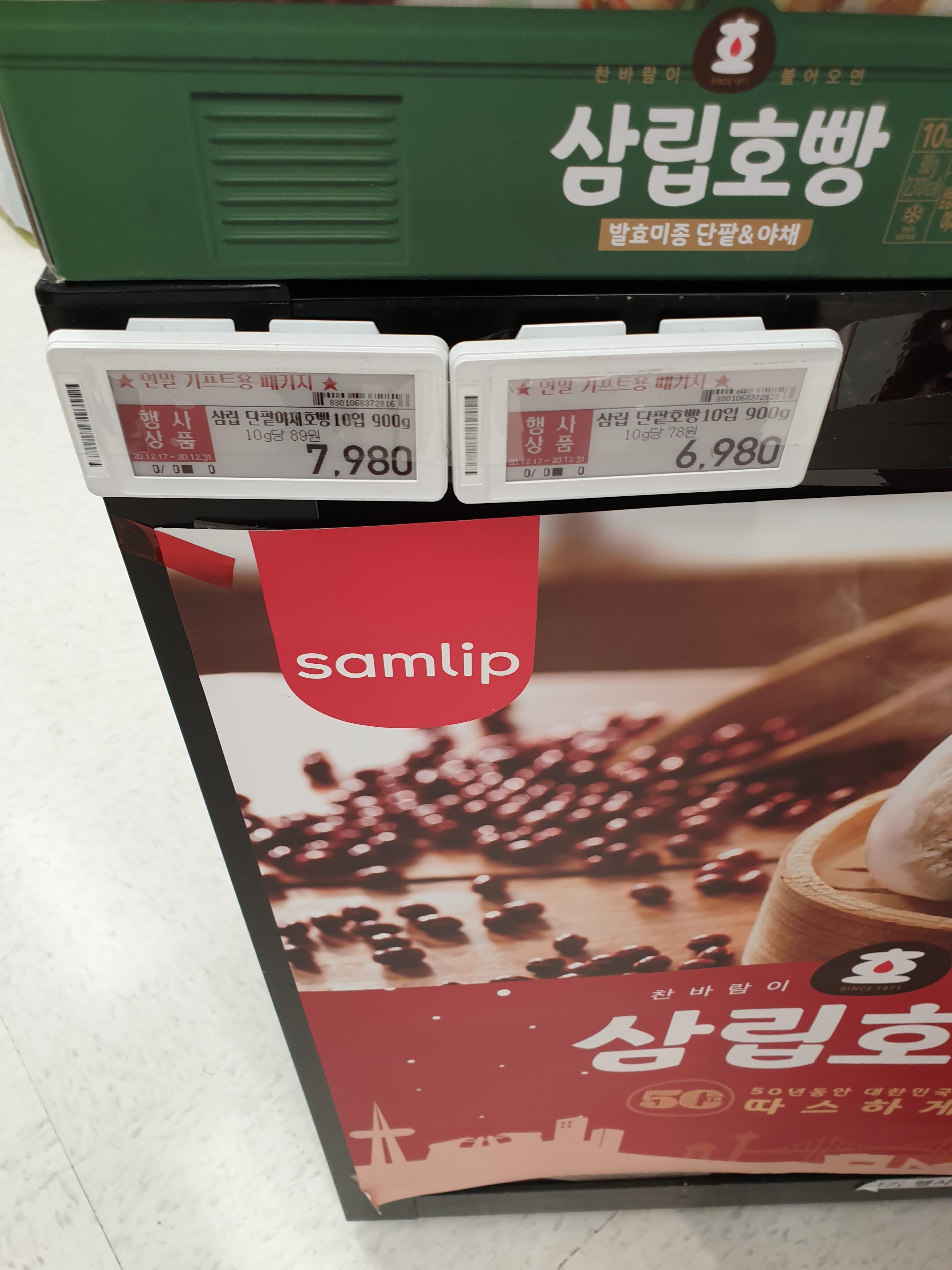 가판대 옆쪽을 보니 선물상자 포장으로 호빵을 팔고 있었습니다. 연말 기프트용 패키지로 삼립 단팥호빵 10개입을 6,980원에 판매하였습니다. 직원 아주머니께서는 낱개 포장되어 있다고 설명해 주셔서 구매를 하게 되었습니다.