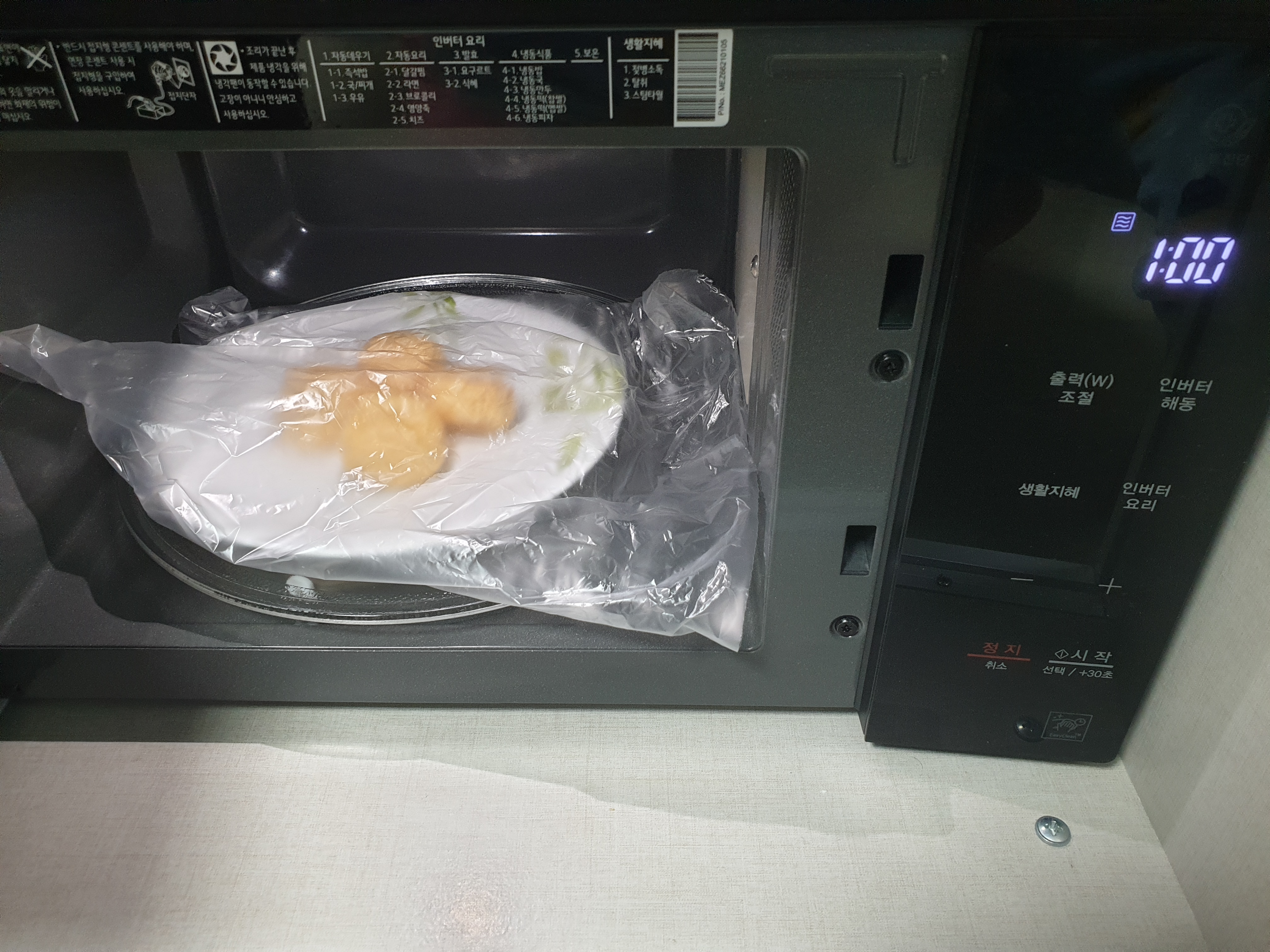 저는 에어프라이어가 없기에 전자레인지에 돌려야겠습니다.