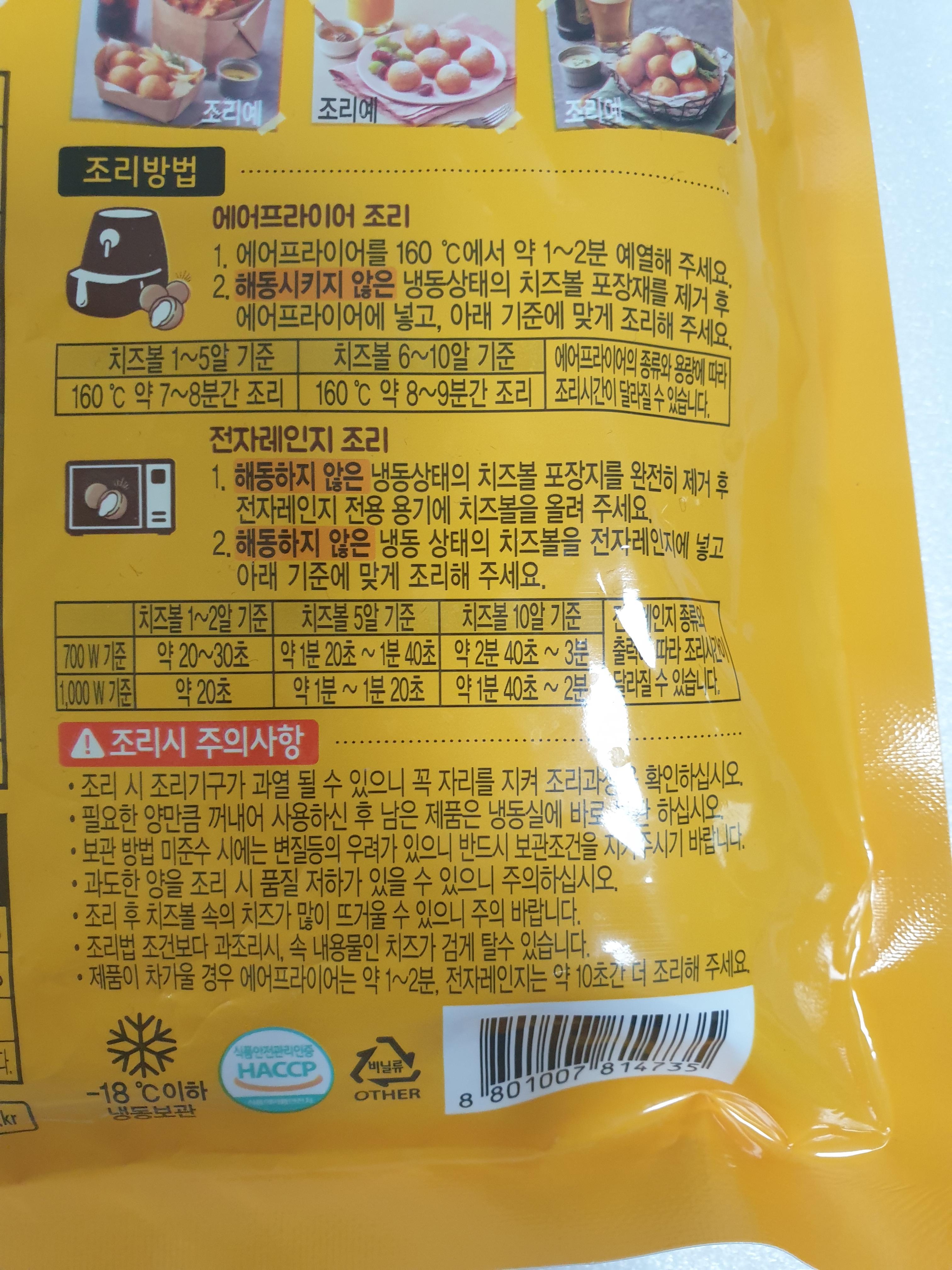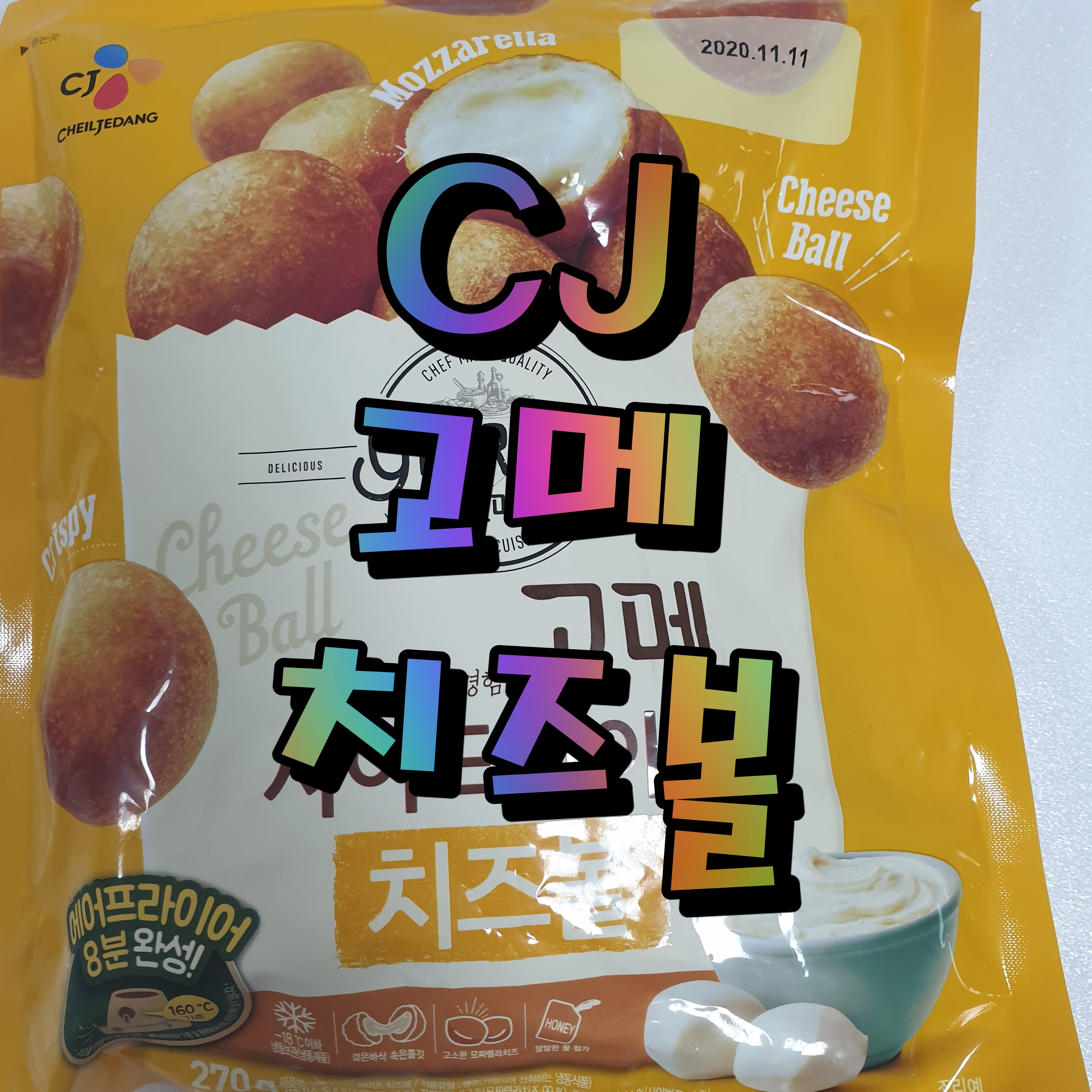 CJ 고메 치즈볼은 CJ제일제당에서 만들었습니다. 에어프라이어에 160도 기준 8분 만에 완성이 된다고 합니다.