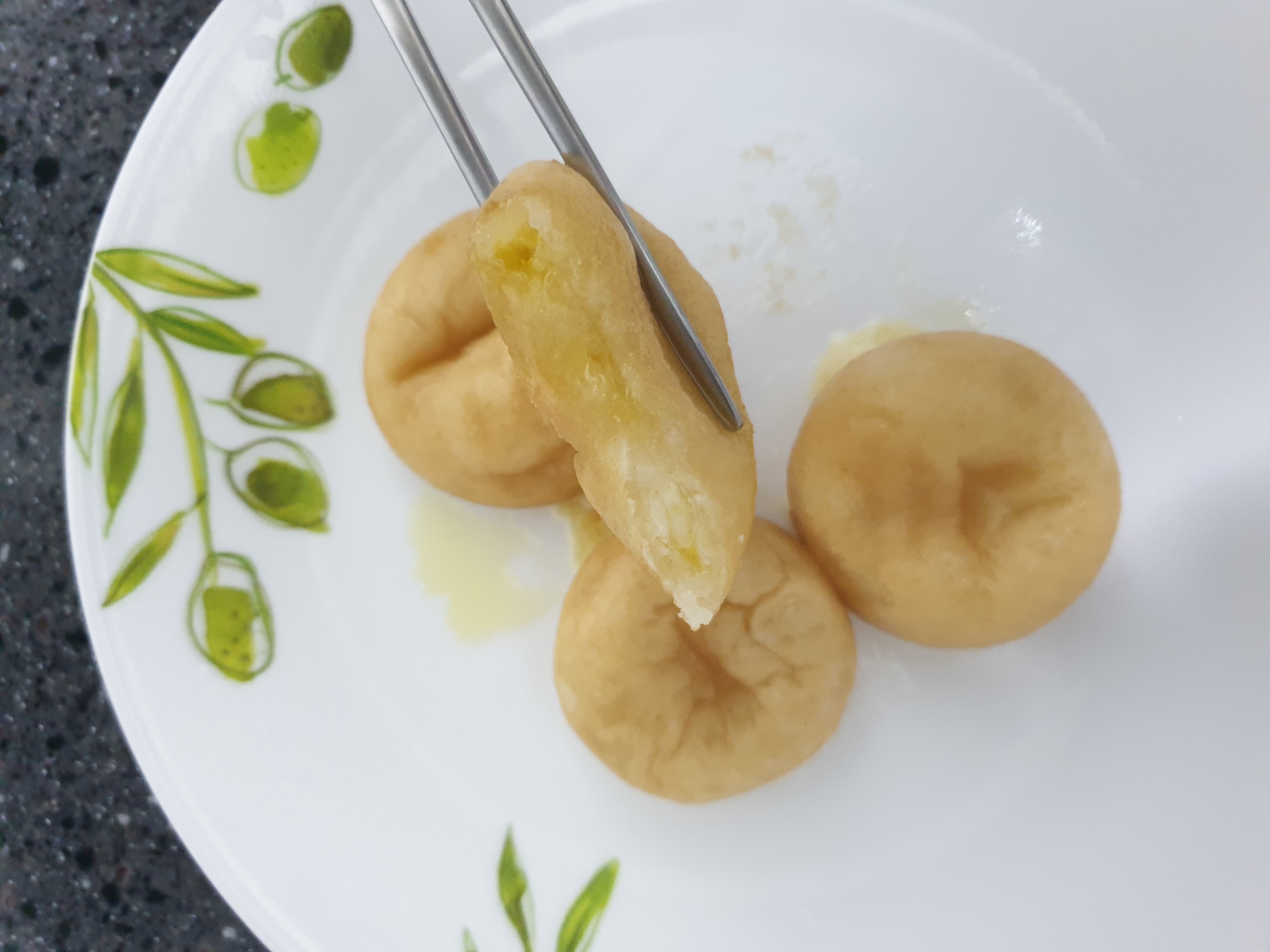 한입 베어 먹어 보았습니다. 음... 음.... 음... 단맛 짠맛은 분명 나는데 겉이 바삭하고 속이 촉촉한 느낌은 잘 모르겠습니다. 치즈의 약간 꿉꿉한 신맛도 섞여 있으면서도 설명하기 불가한 그런 맛이었습니다. 호기심에 한 번쯤 먹어보자는 생각이 드는 정도입니다. 오히려 CJ 고메 치즈볼을 먹고 나니 호프집의 치즈볼이 더욱 그리워지네요.