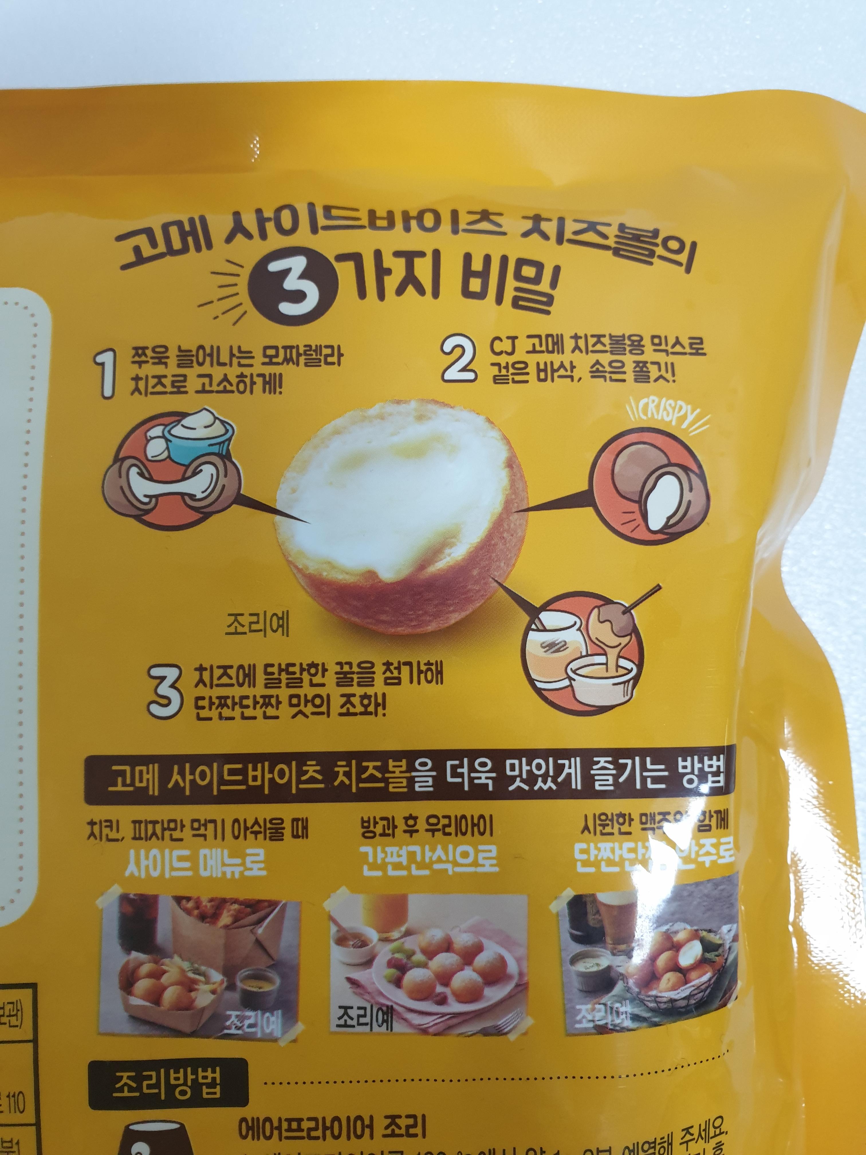 고메 사이드바이츠 치즈볼의 3가지 비밀이라는데, 너무 기대가 되더라고요. 과연 겉은 바삭하고 속은 쫄깃하며 고소한 치즈의 맛을 기대해도 될까요?