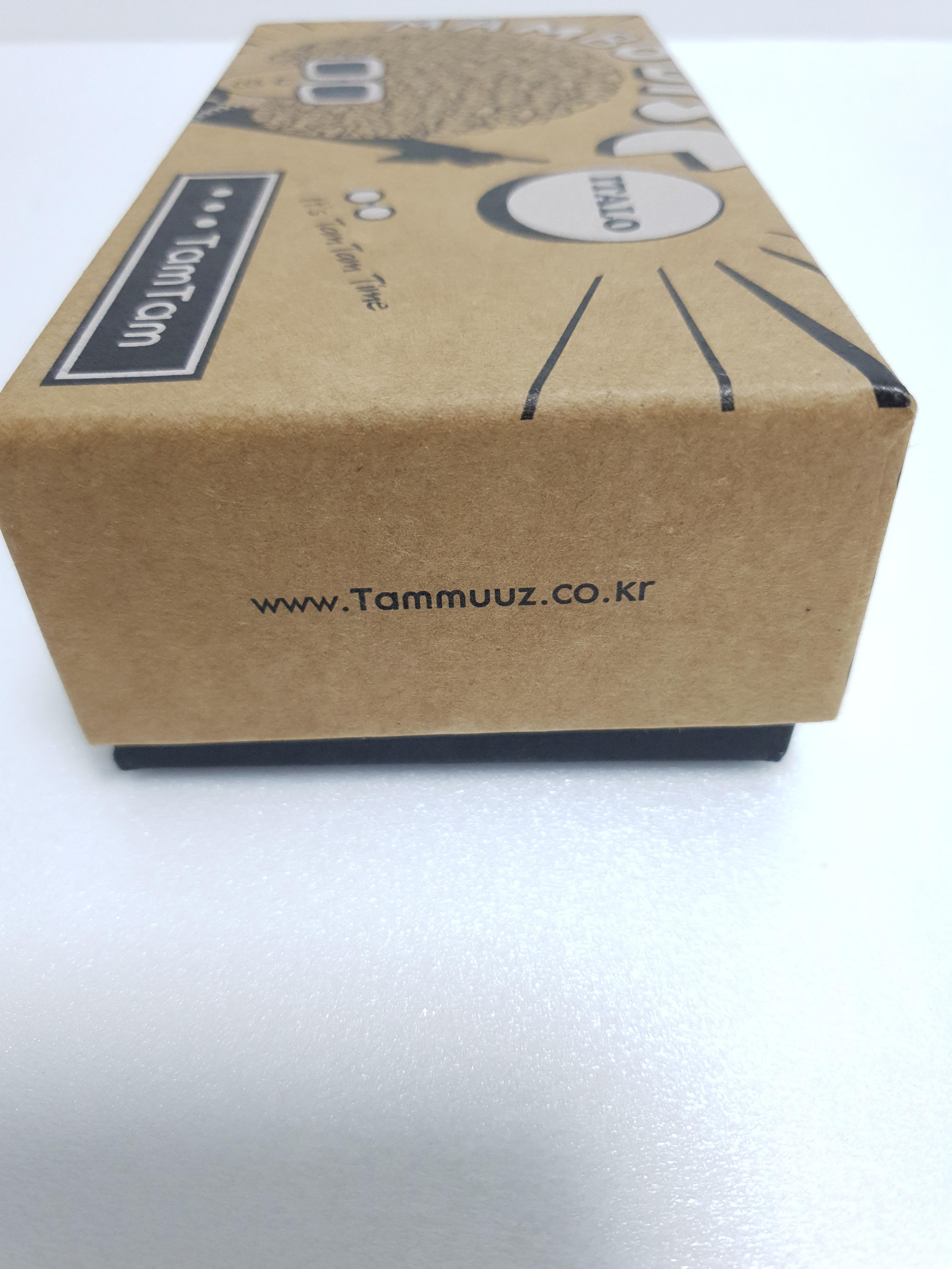 탐탐 PC안경의 박스입니다. 감각적인 디자인이 돋보입니다. www.Tammuuz.co.kr 이 공식 홈페이지입니다. 타뮤즈 다이아몬드 본사에서 직접 주문제작을 통해 배송이 이루어지니 참고 바랍니다.
