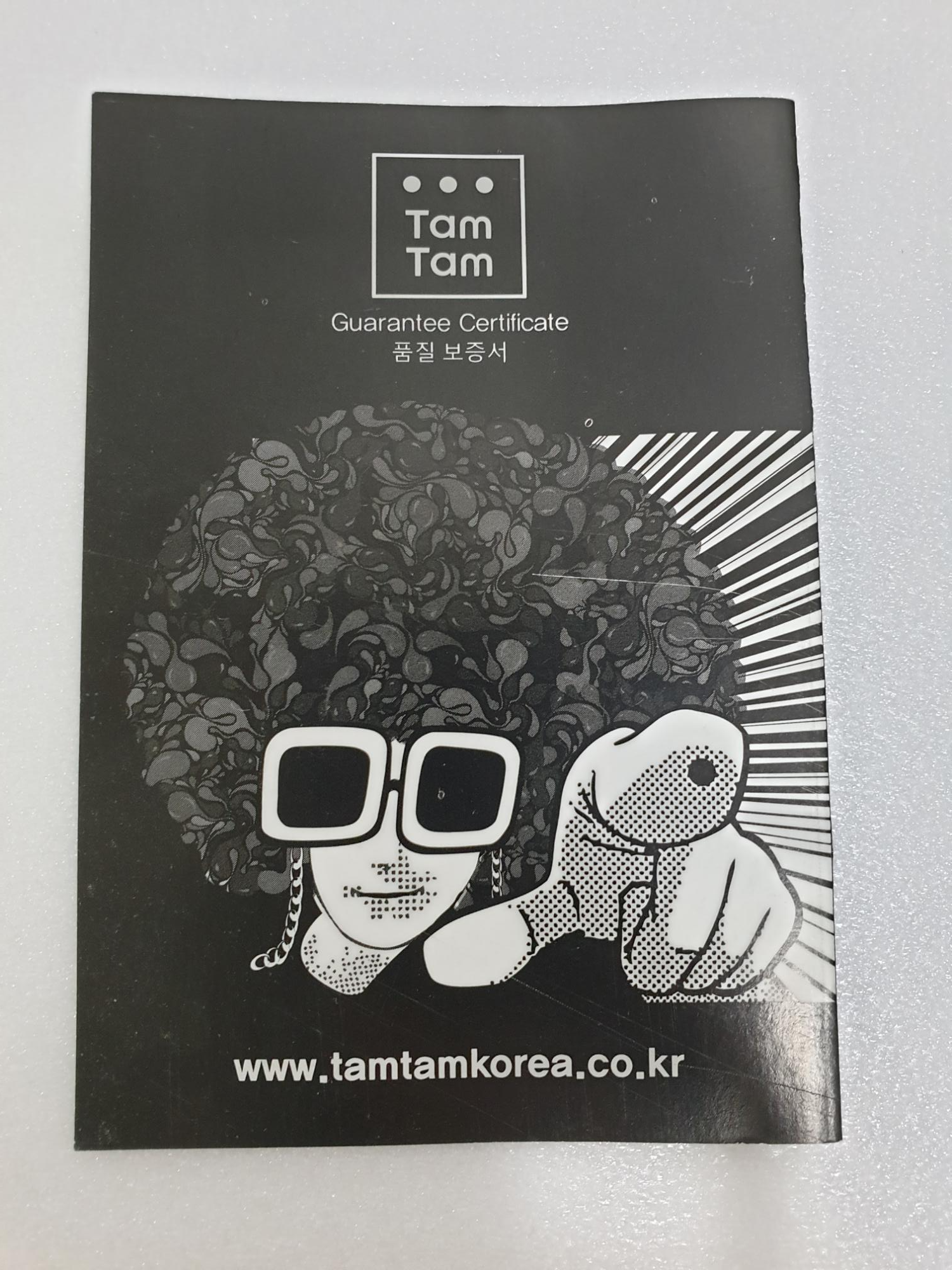 품질 보증서 첫 장에는 탐탐코리아 사이트 주소와 뽀글 머리에 안경을 쓴 캐릭터가 있습니다.