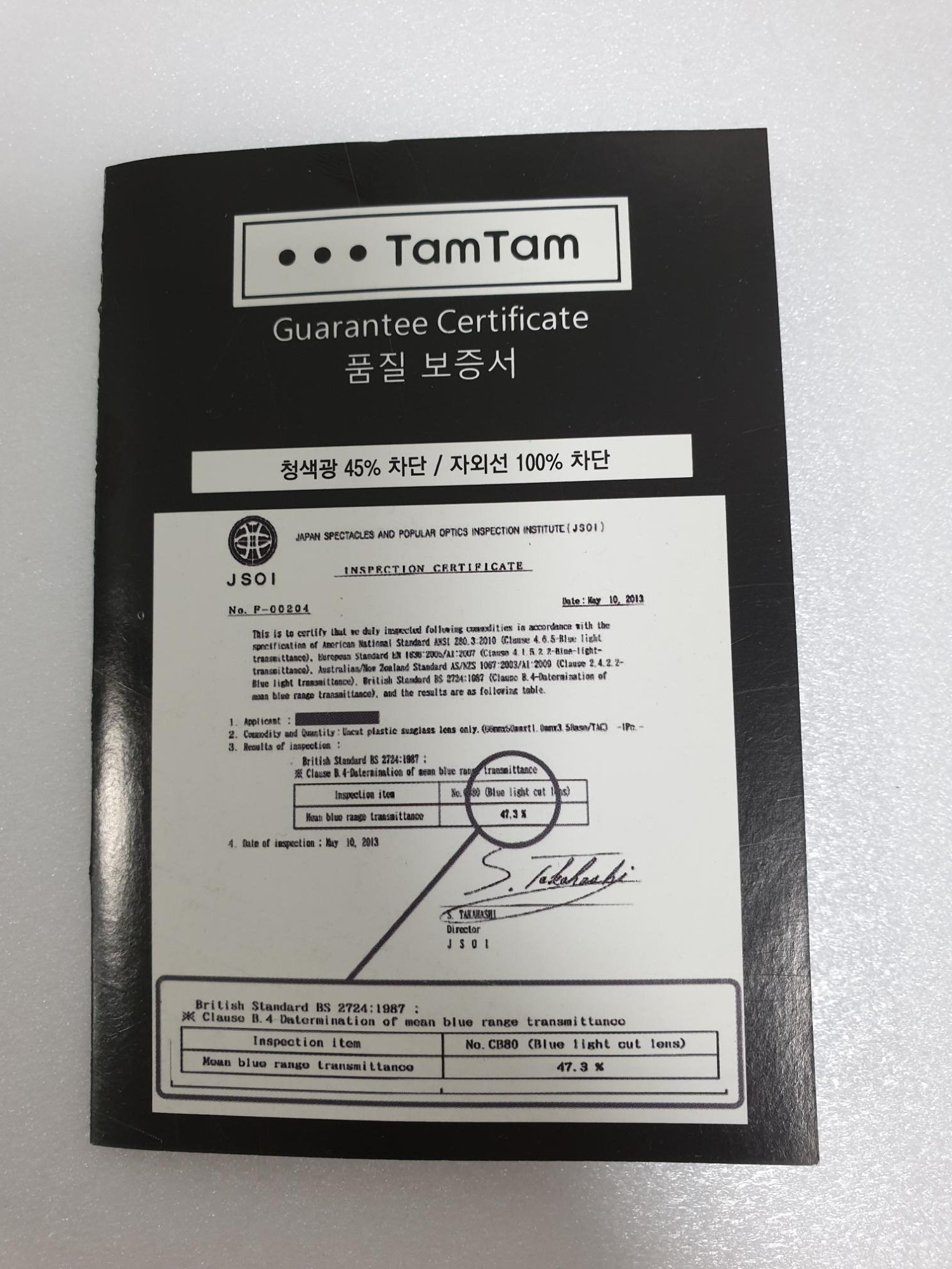 탐탐 안경(PMambo501_Brown-Brown)은 자외선 100%와 블루라이트를 47% 차단해 주기 때문에 라섹&라식수술 안경으로 유명합니다. 라섹이나 라식 수술을 하고 나면 안구건조증이나 빛 번짐 등으로 고생을 하시는 분들도 종종 있는데요. 탐탐 안경은 블루라이트와 자외선을 효과적으로 막아주어, 부작용을 최소화한다고 합니다.