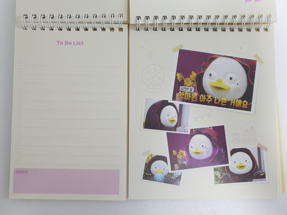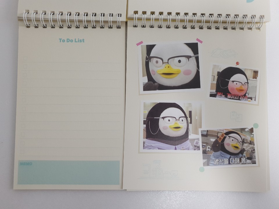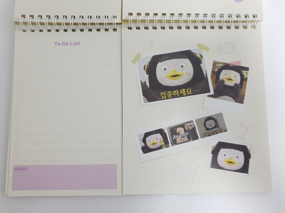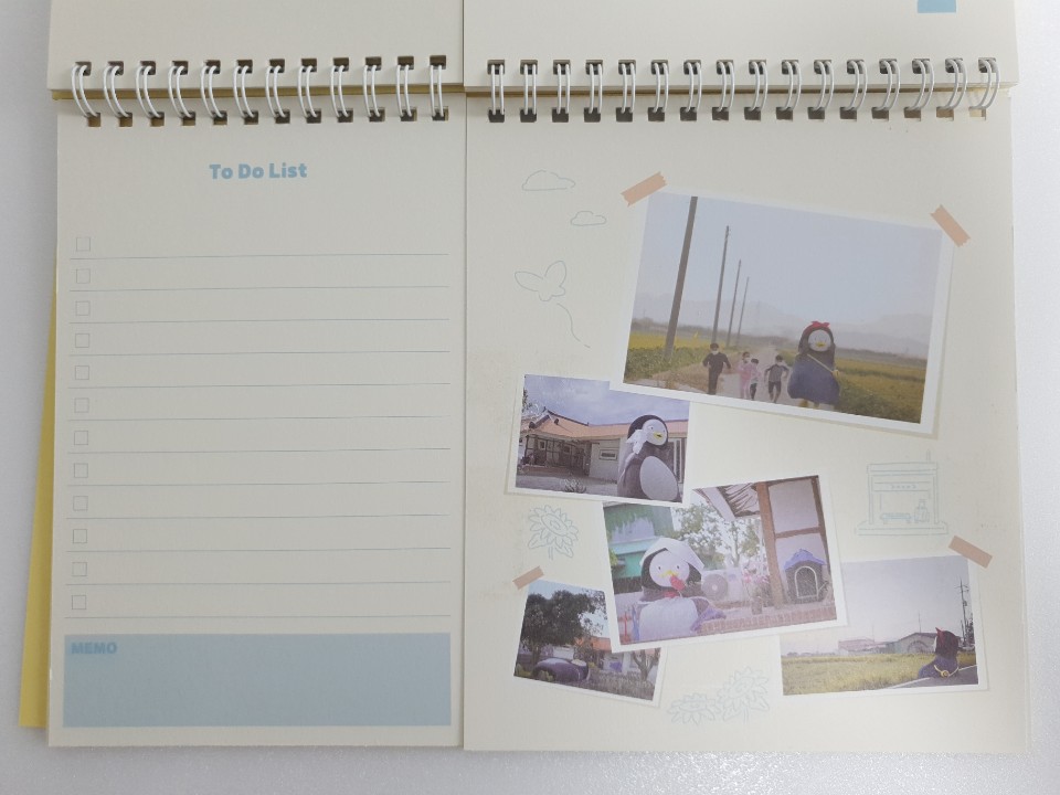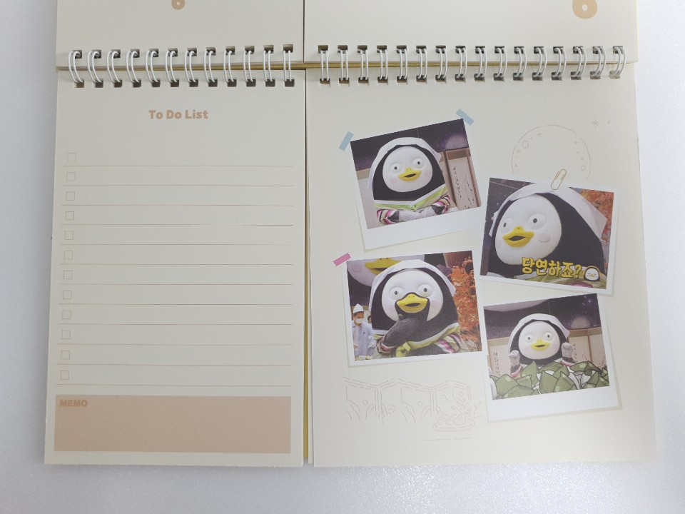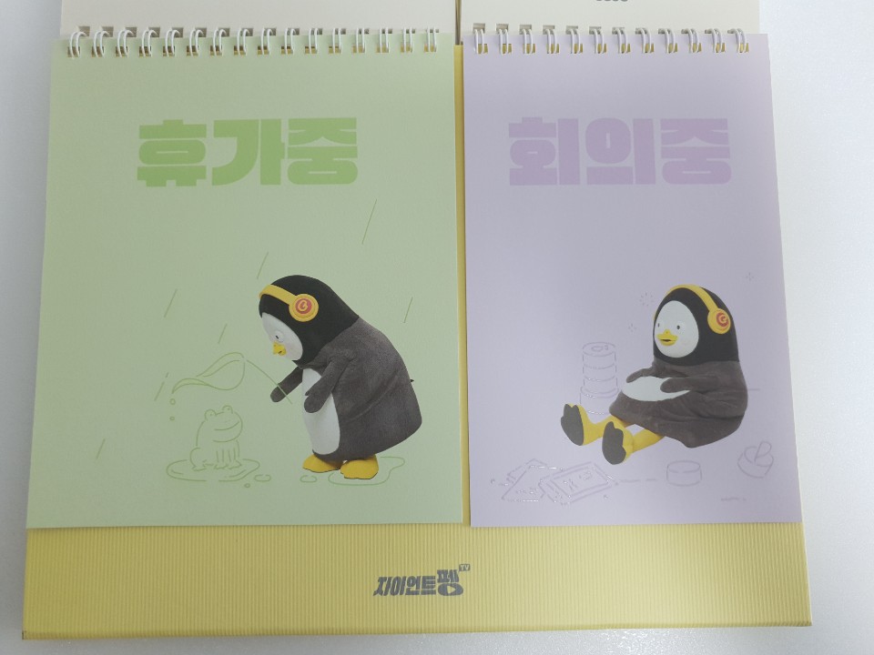 포장지를 벗기고 본격적으로 펭수 달력을 확인해 보았습니다. 달력 디자인이 특이하게 2등분으로 나누어져 있습니다. 나뉘어진 각각이 어떤 구성으로 이루어져 있는지 사뭇 궁금하네요.