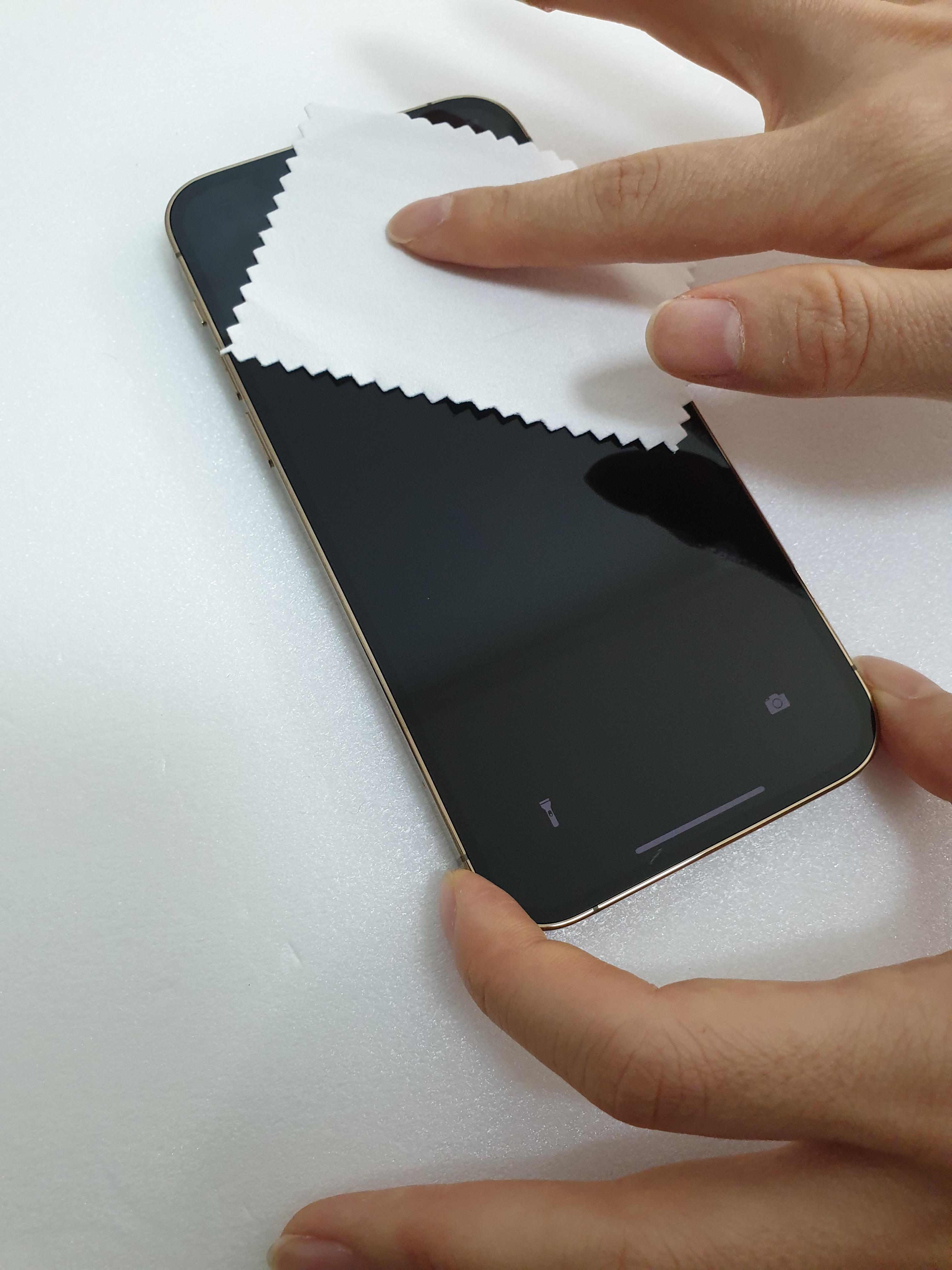 우선 아이폰12의 액정화면을 Wet Wipes로 깨끗이 닦아줍니다.