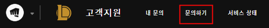 리그 오브 레전드 고객센터에 들어와서 상단의 문의하기를 눌러줍니다.