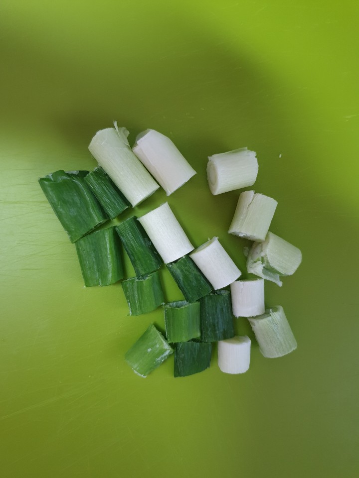 국물이 진득해질 때쯤에 대파를 썰어주세요. 대파를 넣지 않아도 크게 상관이 없으니 기호에 따라 첨가해주세요.