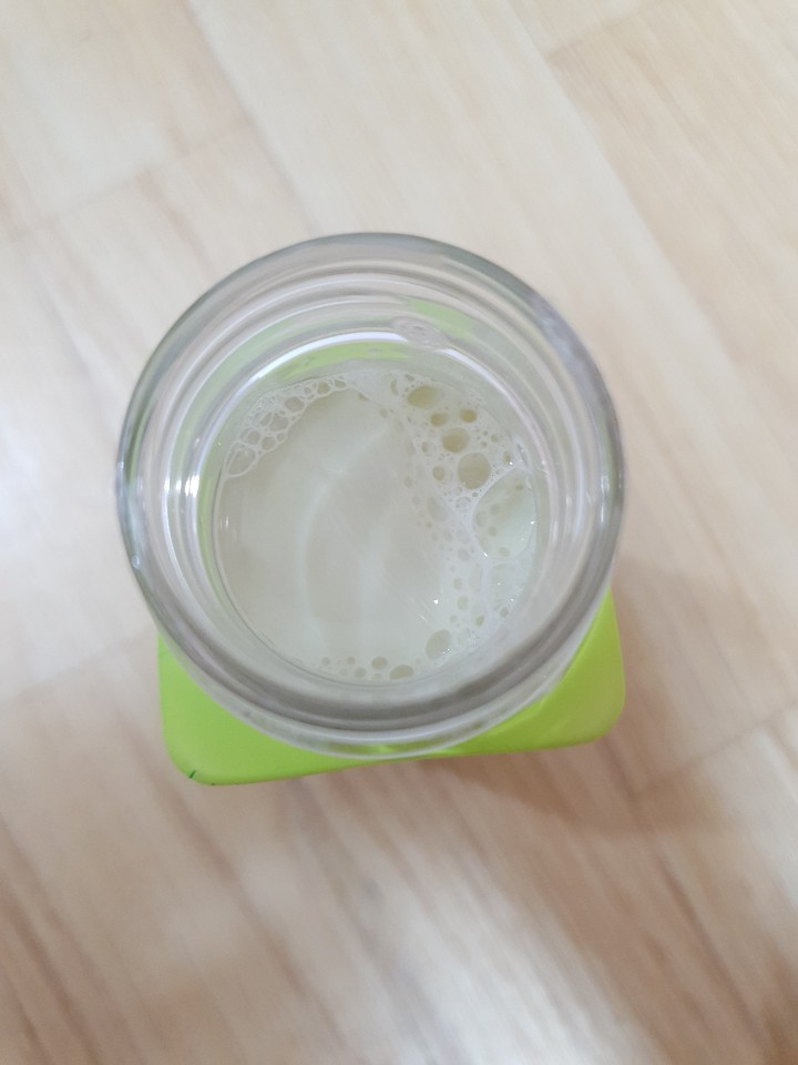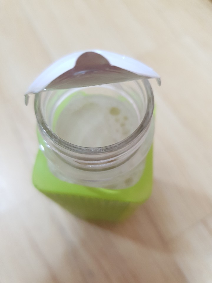 이제 동봉된 용기를 벗겨서 맛을 확인해 보았습니다. 제가 예상한 딱 그 맛이 났습니다. 메로나를 녹여서 메로나 보틀에 넣어주면 메로나 우유가 되었다고 느끼게 만드는 맛입니다.
