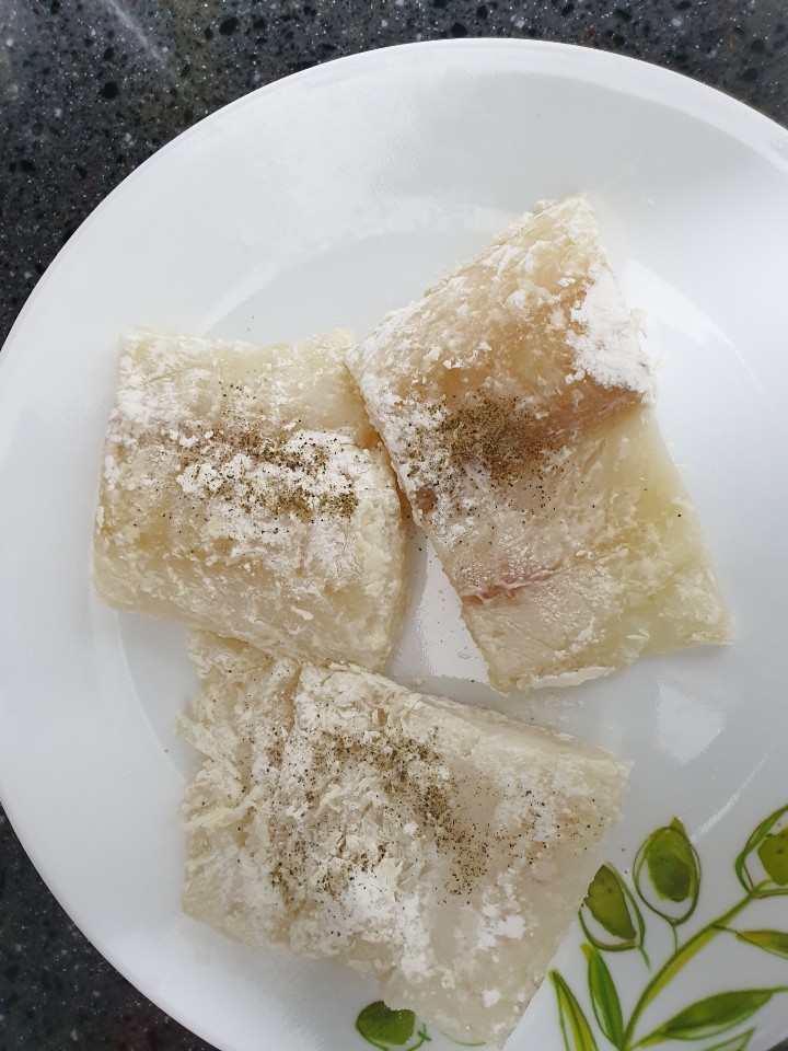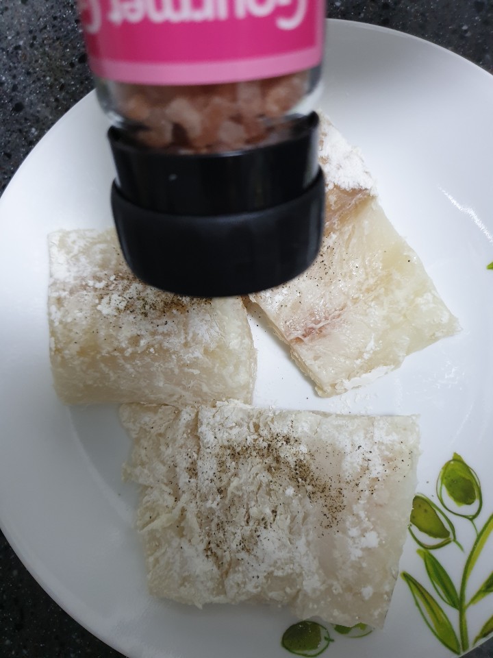 후추와 소금을 꿀대구의 양면에 적당히 뿌려주세요.