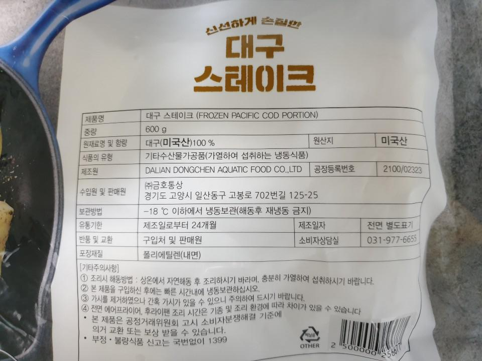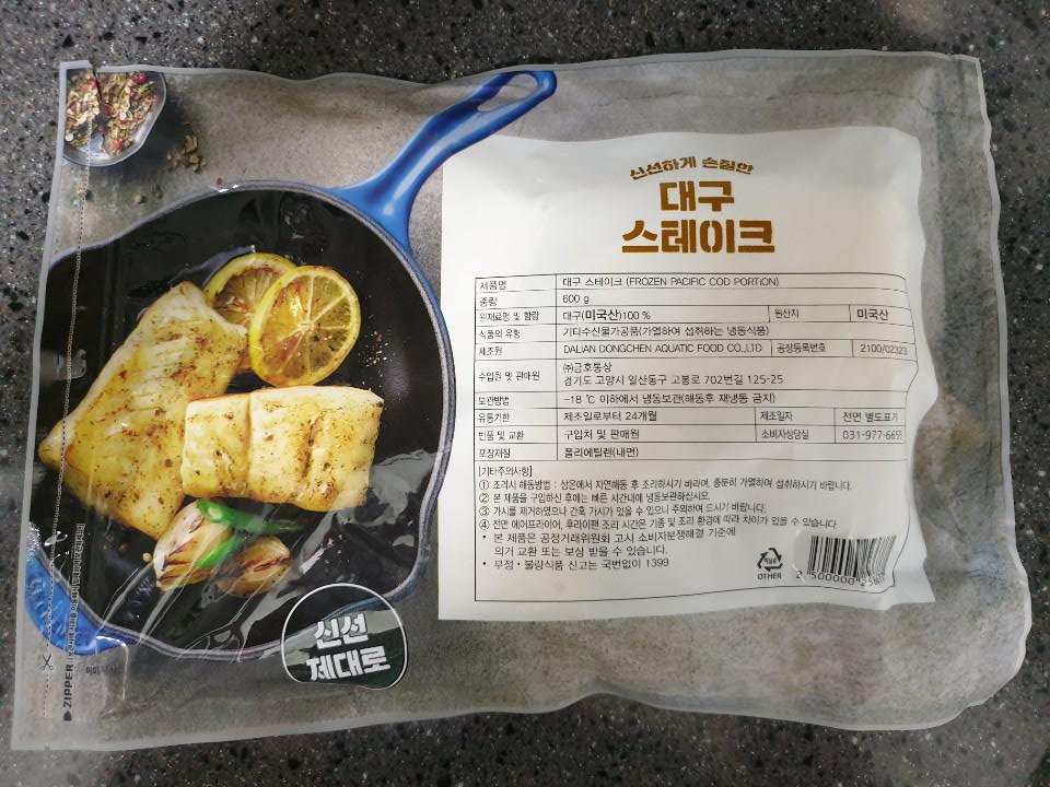 꿀대구 만들기의 가장 중요한 대구입니다. 초간단 레시피의 조건은 생선 손질을 하지 않는 것에 달려있다고 해도 과언이 아니죠. 요즘은 이렇게 스테이크를 할 수 있게 나와서 대구를 손쉽게 이용할 수 있습니다.