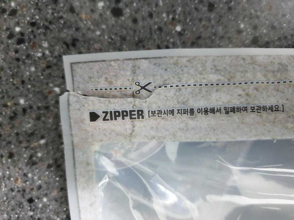 절취선을 자르면 지퍼가 나와 밀폐 보관이 용이합니다.