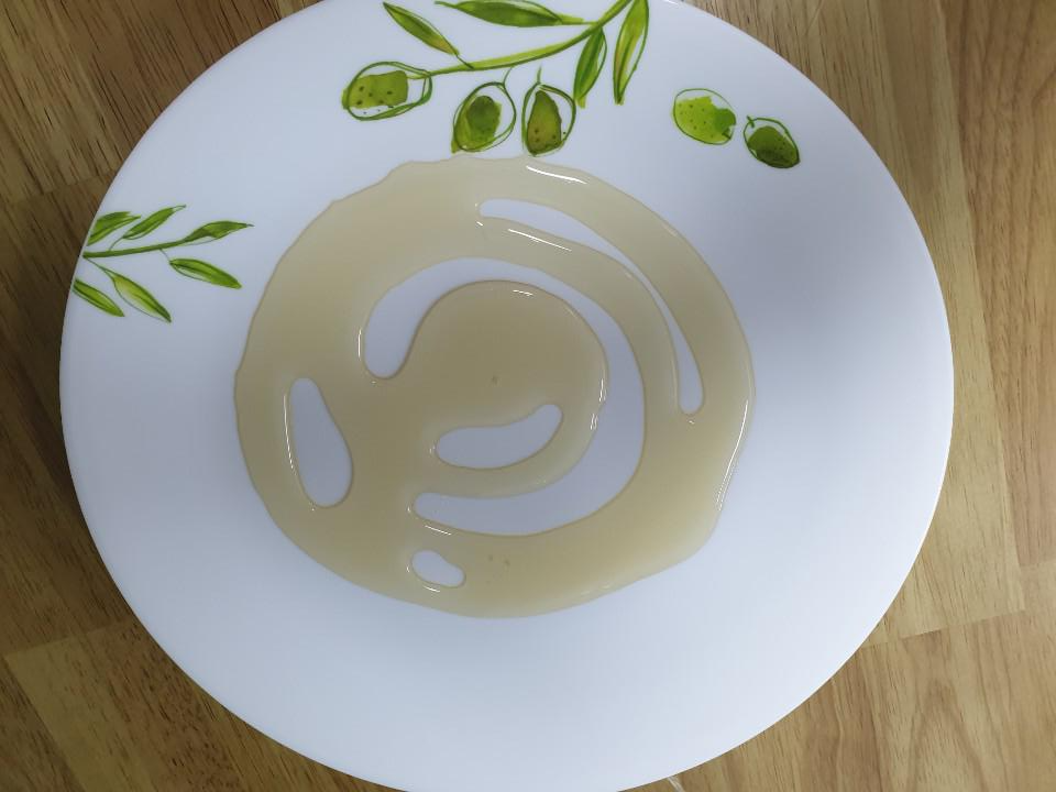 빈 그릇에 꿀을 바닥에 깔아서 골고루 퍼뜨려 줍니다.