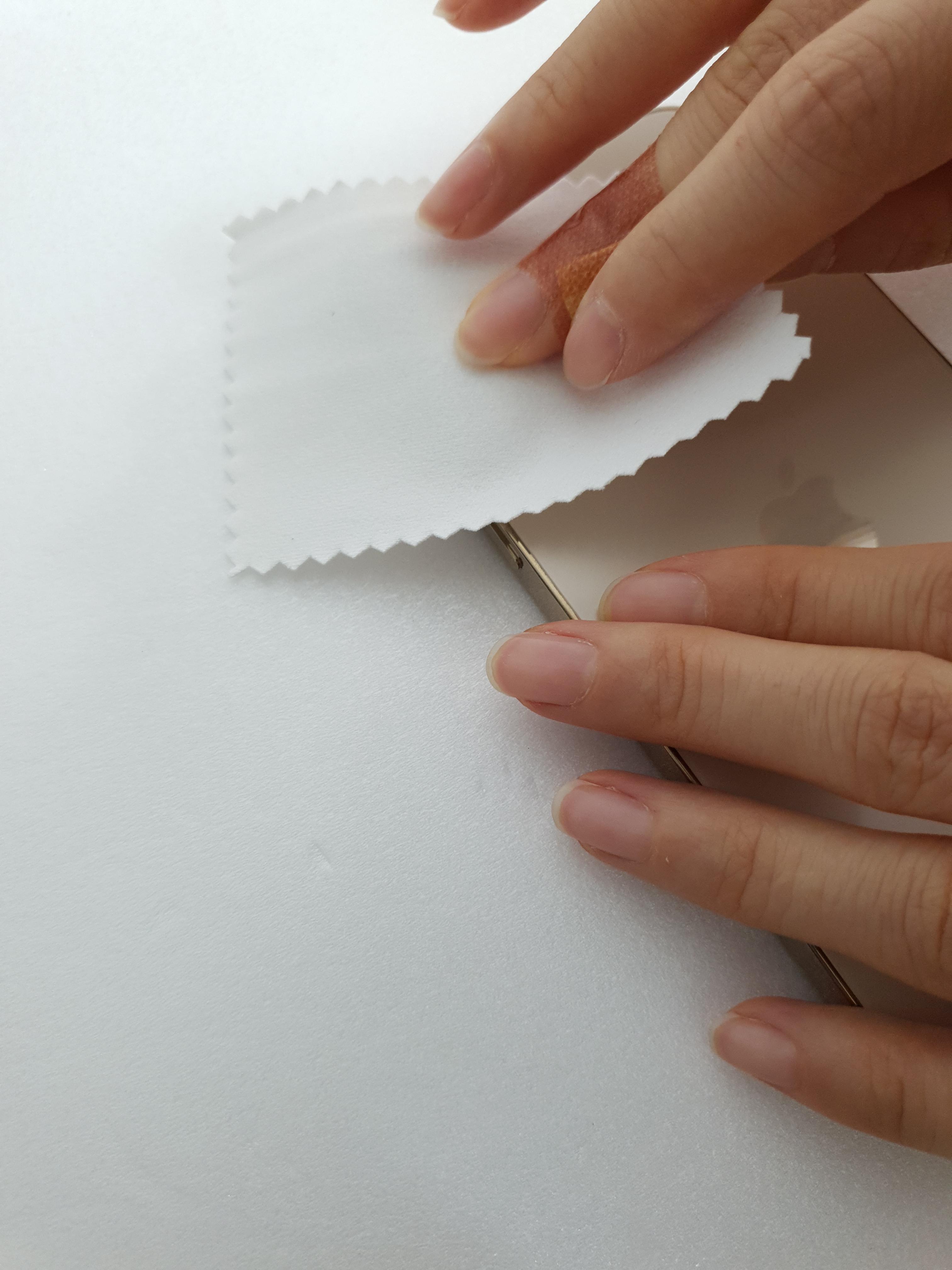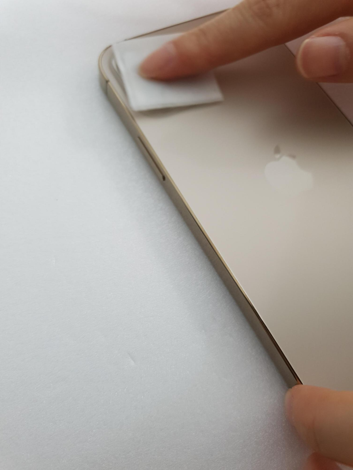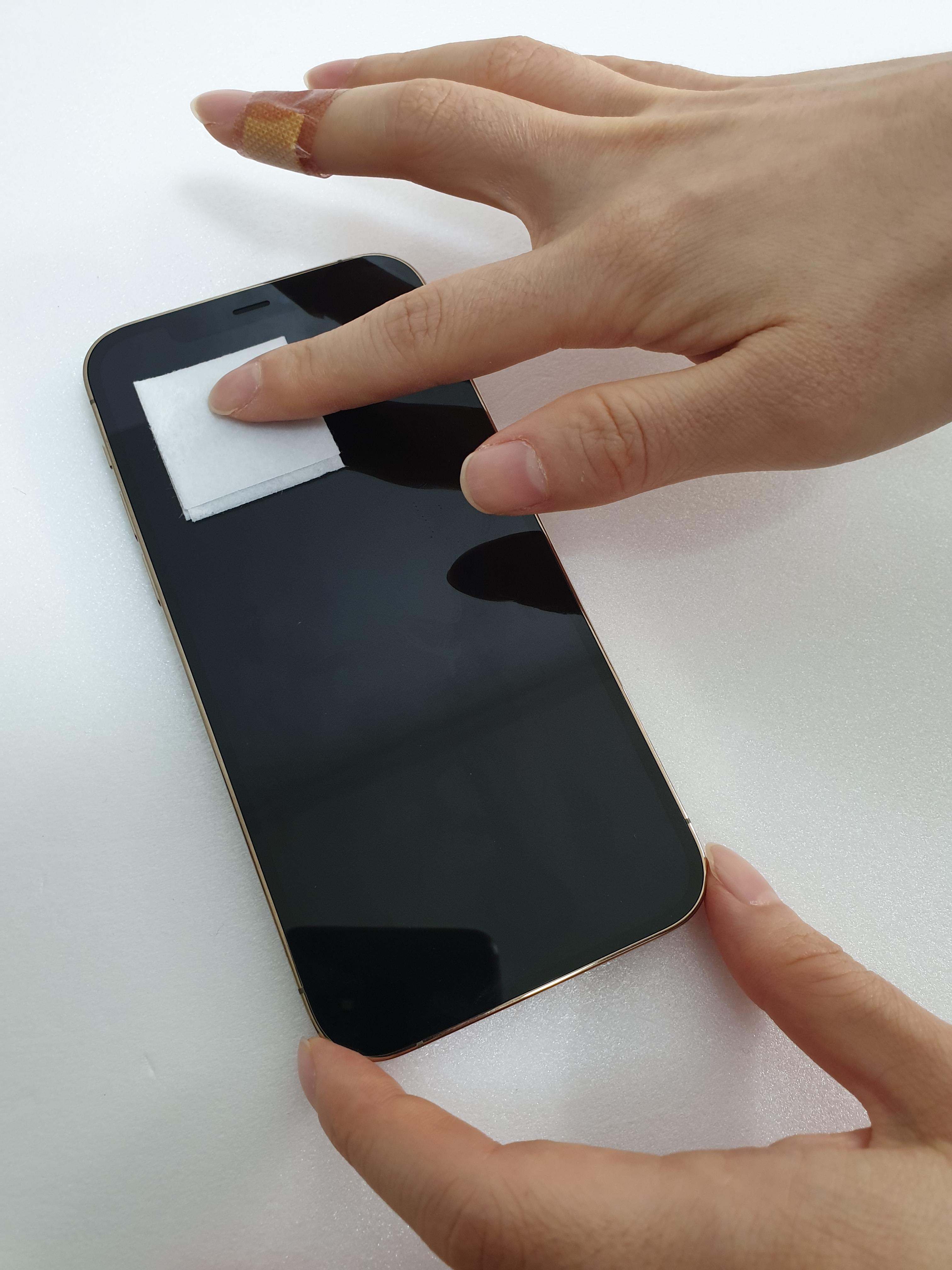 우선 아이폰12의 액정화면을 Wet Wipes로 깨끗이 닦아줍니다.