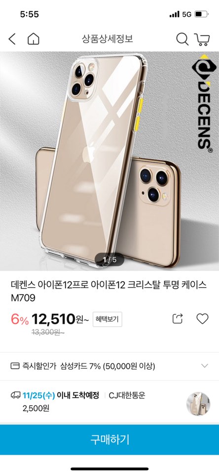 액정보호필름 & 카메라 전용 강화유리와 마찬가지로 CJ몰에서 아이폰12/12 pro 데켄스 케이스를 구매하였습니다.