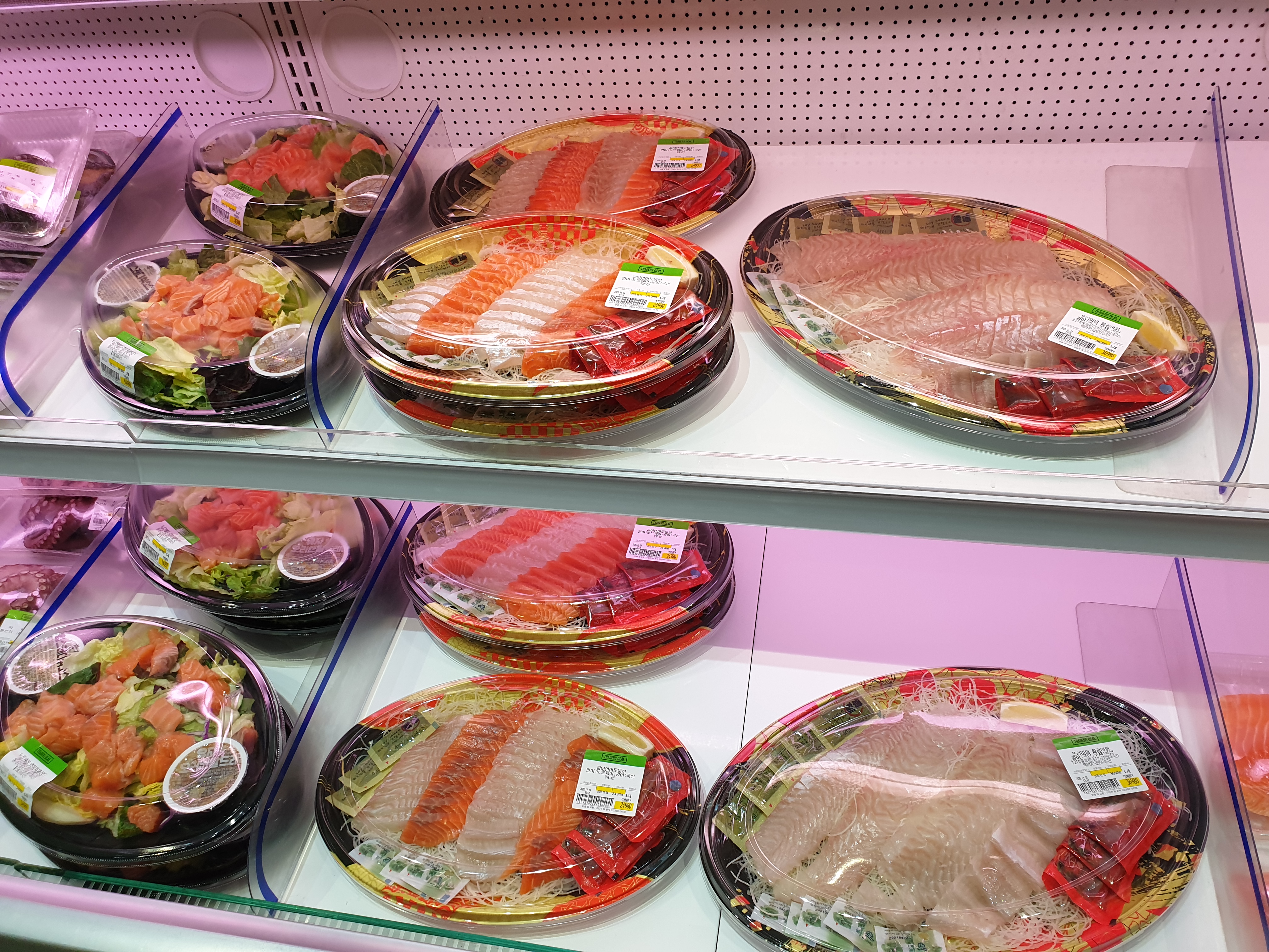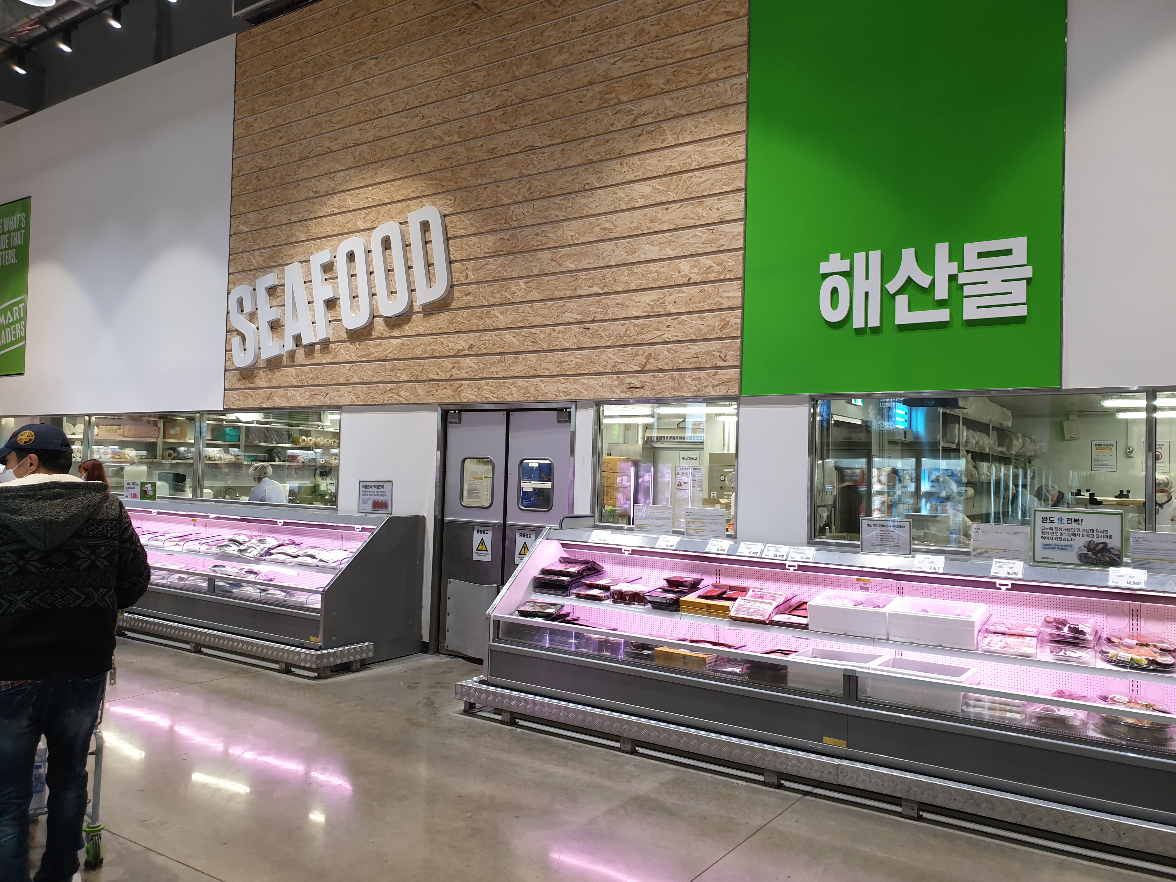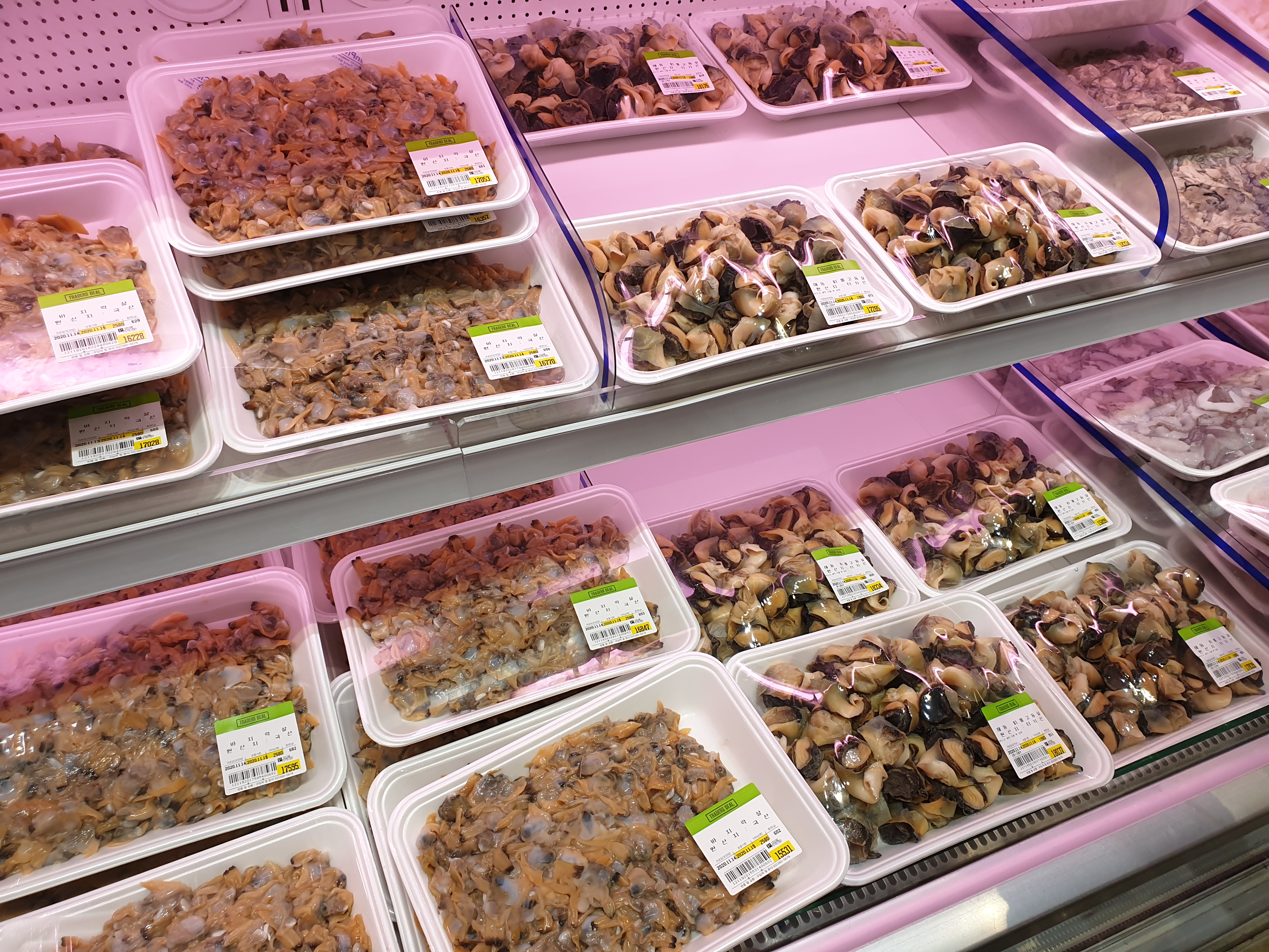 해산물 코너입니다. 싱싱한 해산물들이 곱게 포장되어 있네요.