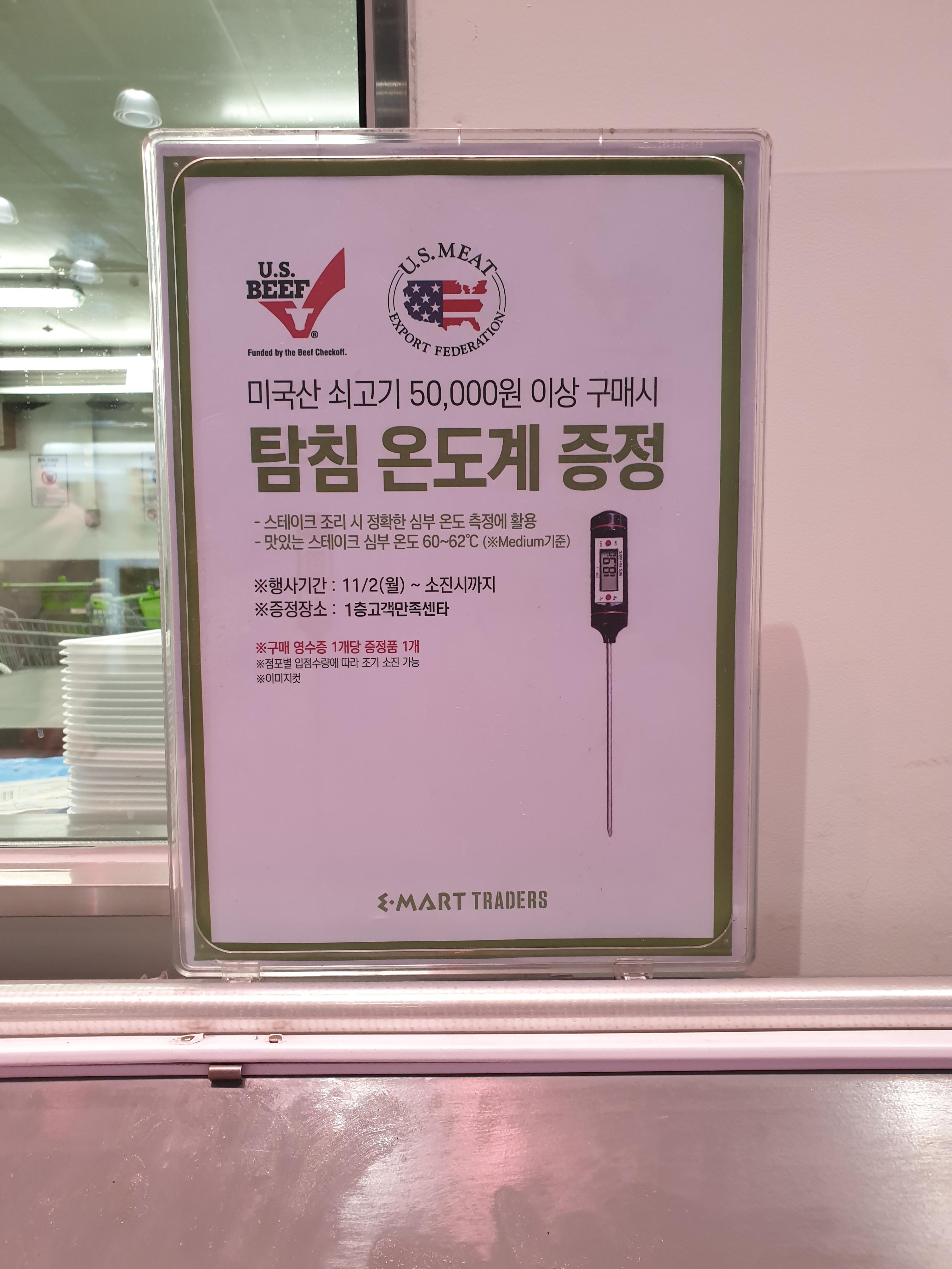 미국산 소고기를 5만 원 이상 구매하면 재고 소진 시까지 탐침 온도계를 증정합니다.