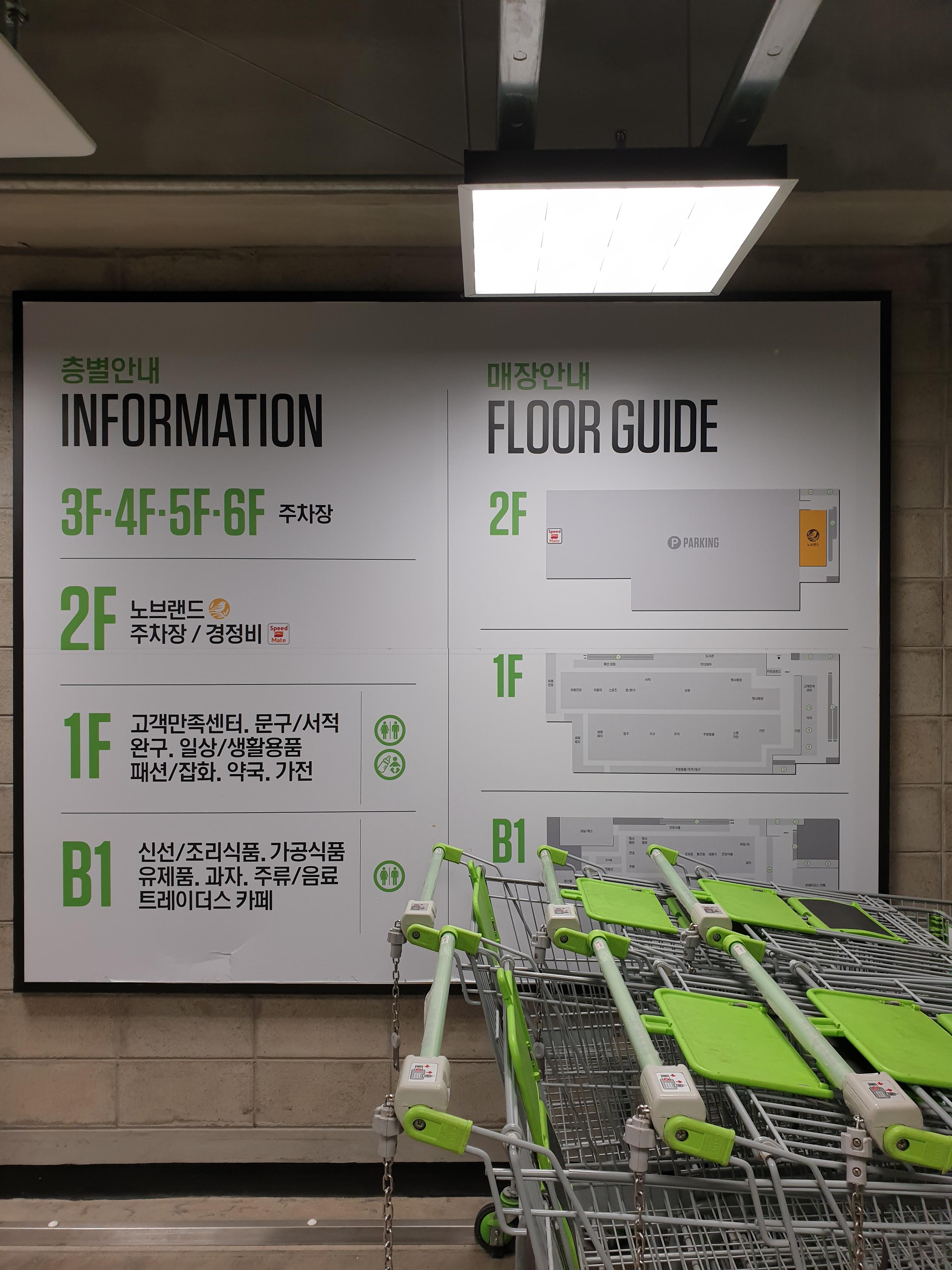 주차장으로 향하는 에스컬레이터에서 지하 1층 계산대의 모습을 담아봤습니다.