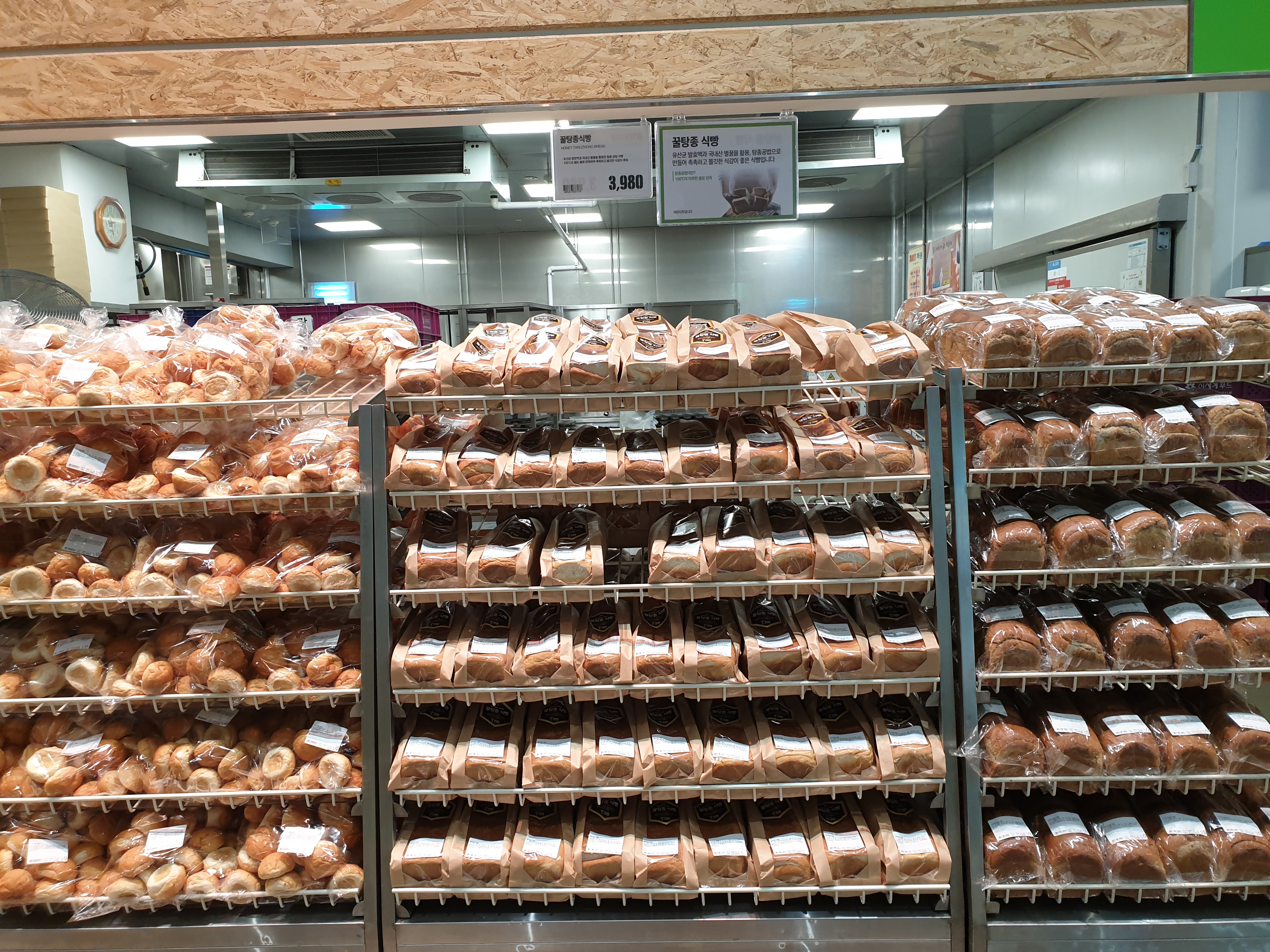 베이커리에서도 대량의 빵들이 진행되어 있는 것을 볼 수 있습니다.