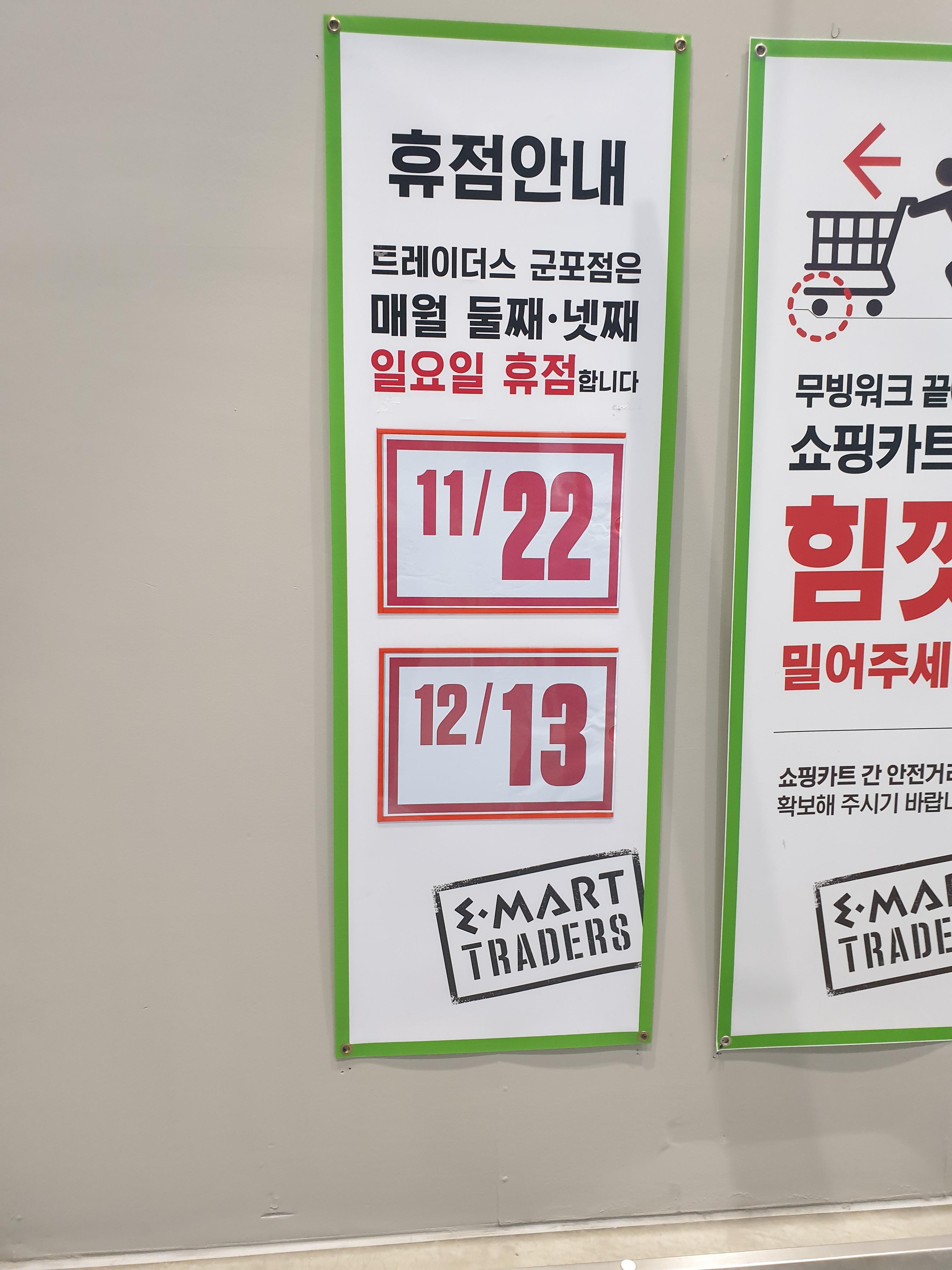 영업시간 및 휴점은 이마트 트레이더스와 동일합니다.