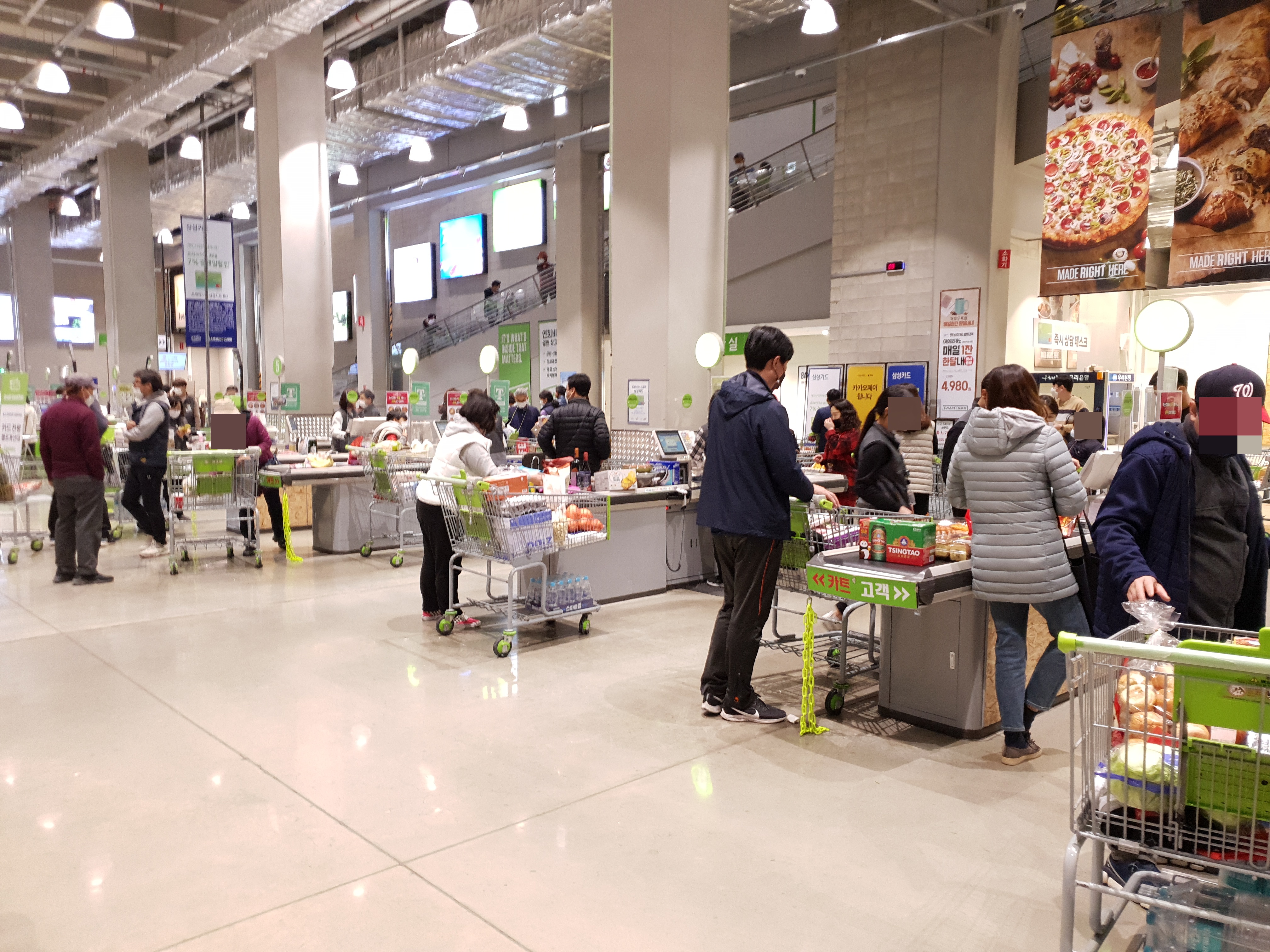 코로나 19의 영향으로 이마트 트레이더스를 방문하는 사람들도 많이 줄었다는 것이 계산대에서 확인할 수 있었습니다.