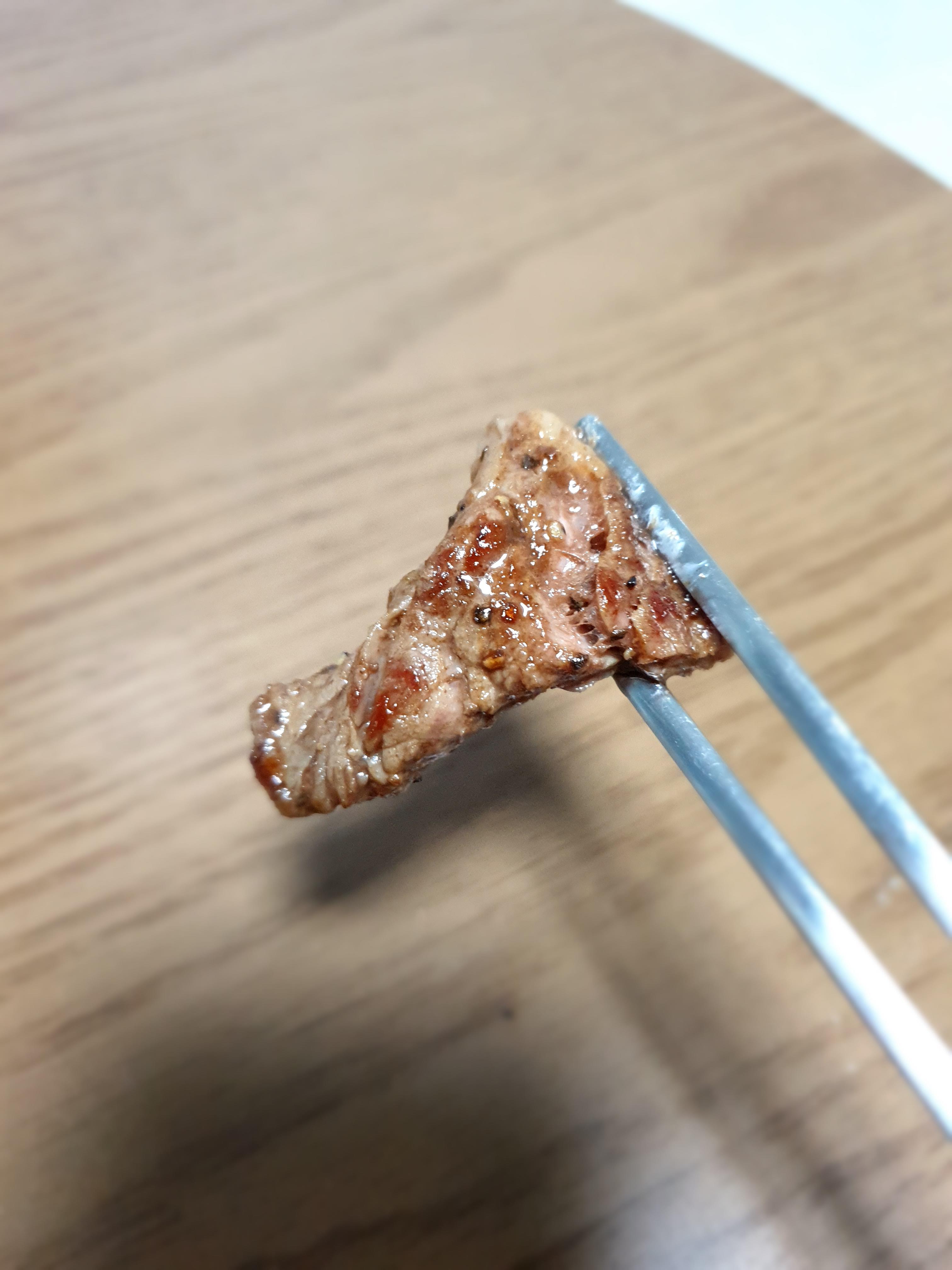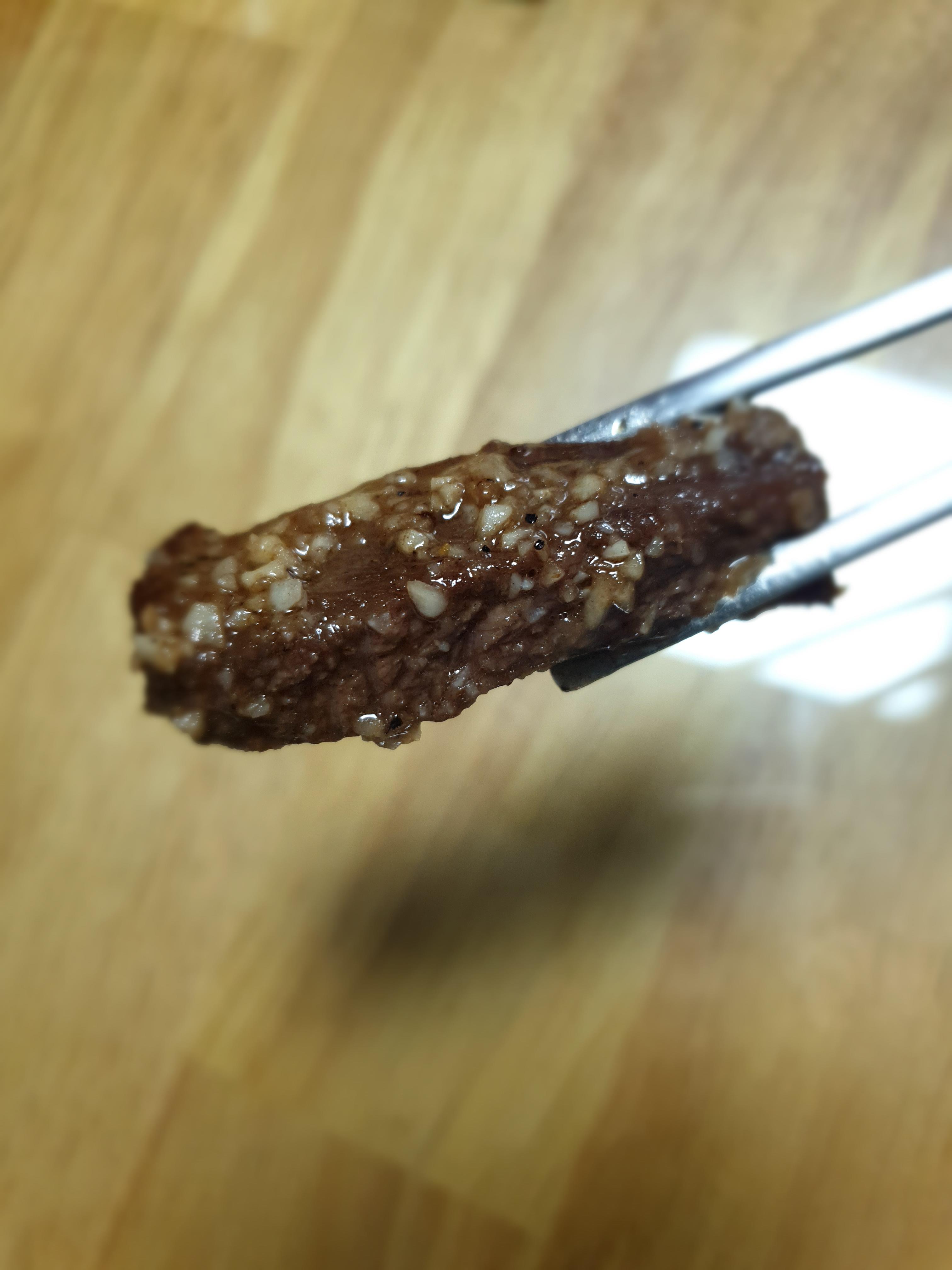 기존에 먹던 미디엄이 아닌, 미디엄-웰던의 굽기로 구웠습니다. 전날보다 좀 더 구워진 것을 사진으로도 확인이 가능했습니다.