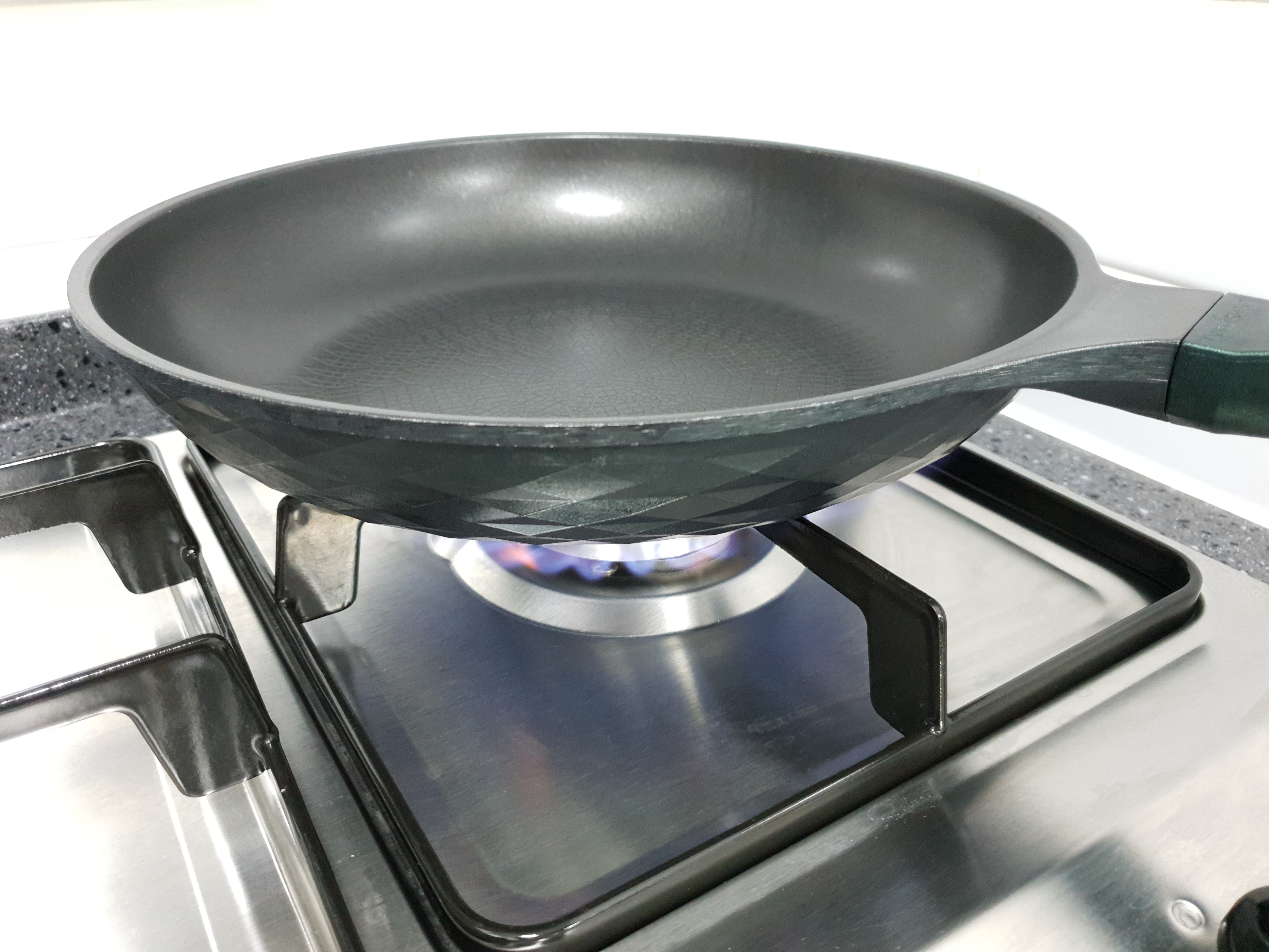 프라이팬을 약 1분 동안 달궈주어 소고기가 눌러붙지 않게 해 줍니다.