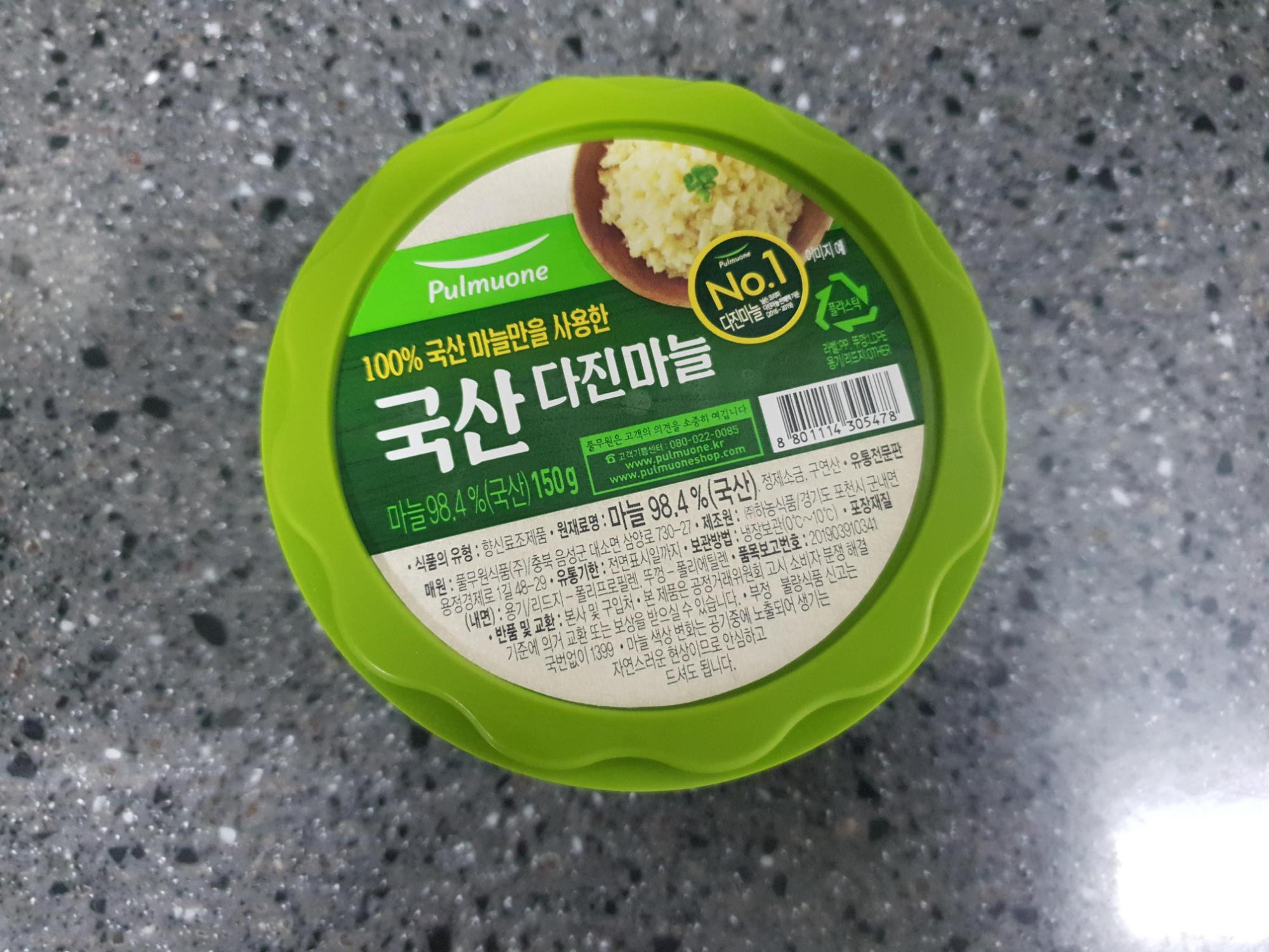 고기를 먹기 좋은 크기로 잘라주고 다진 마늘을 첨가해 주었습니다. 비린내라는 잡내를 제거하기 위한 처절한 사투가 보이시나요?