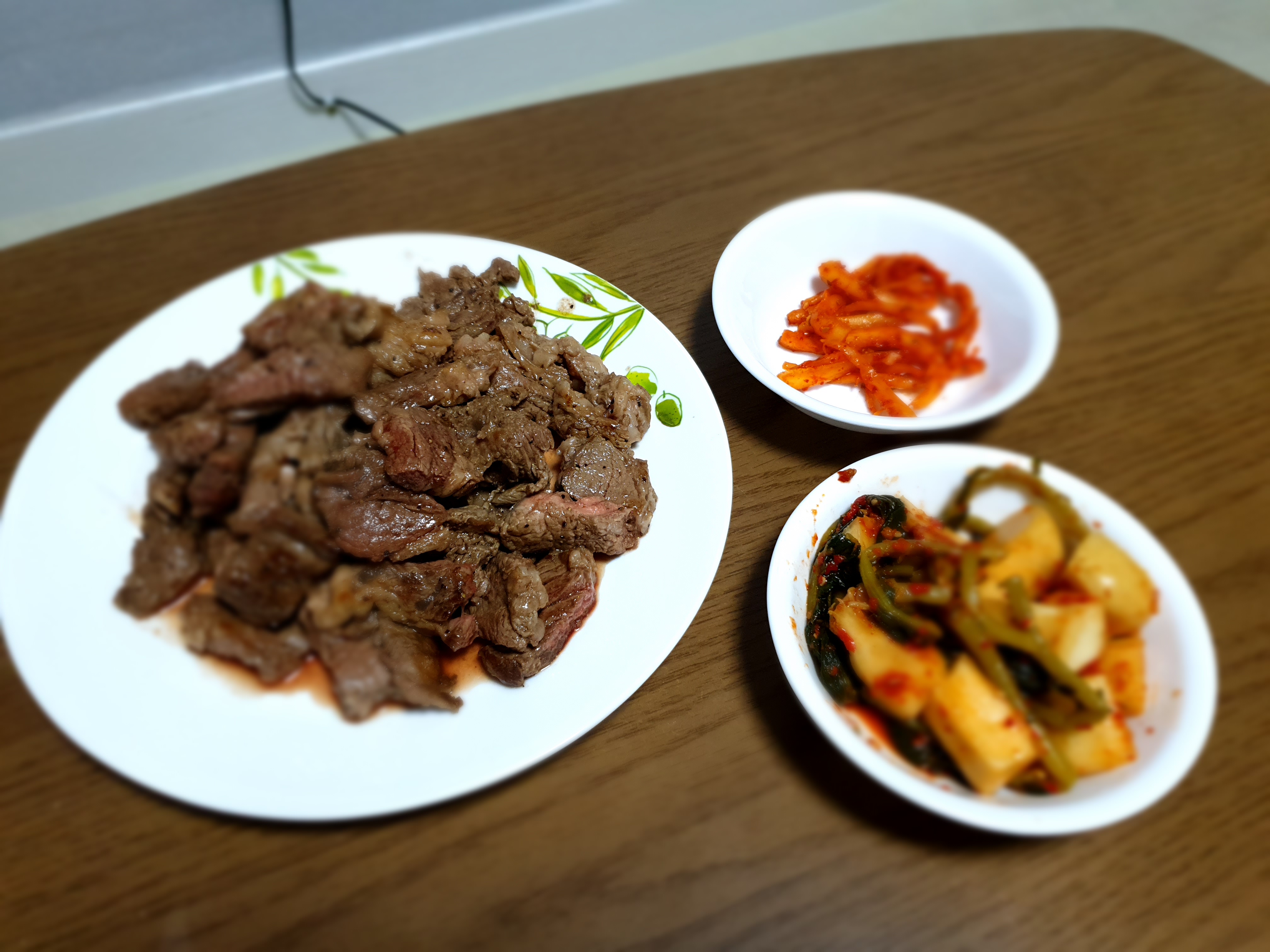 밑반찬과 곁들여 소고기를 먹었습니다. 결과는?